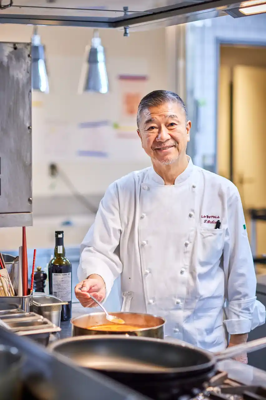 神奈川県生まれのイタリア料理のパイオニア。ホテルニューオータニでのフランス料理修業からイタリア料理に転向し、イタリアで約3年間修業後、日本で「グラナータ」の料理長を経て1997年に銀座で「ラ・ベットラ」をオープン。「日本一予約が取れないレストラン」として有名になり、メディアでも幅広く活躍し、2020年からは日本イタリア料理協会名誉会長を務め、現代の名工など数々の栄誉を受賞しています。 |