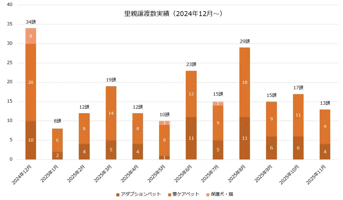 2025年11月度時点での里親探し活動実績と、現在里親を募集しているペットについてご紹介します。 |