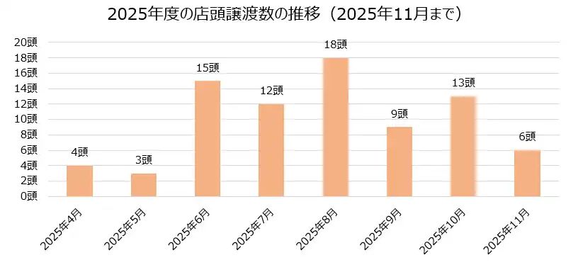 ペッツファーストグループにおける里親探し活動は2016年の開始から9年目となり、累計での譲渡頭数は1,300頭を超えました(2025年11月末時点)。直近での譲渡数推移は以下のようになっており、2025年11月度の譲渡頭数は13頭(要ケアペット9頭、保護犬・猫0頭、アダプションペット4頭)となっております。 |