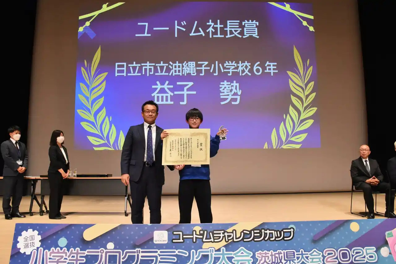 株式会社ユードム(本社:茨城県水戸市、代表取締役社長:森 淳一)は、2025年12月20日(土)、水戸市民会館 ユードムホールにて開催された小学生向けプログラミング大会「ユードムチャレンジカップ(全国選抜小学生プログラミング大会 茨城県大会)」に特別協賛いたしました。 |