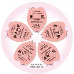 今年も受験生のサクラ(桜駅)サク!を願い、春には喜(喜多山駅)びと楽(楽田駅)しい学生生活を応援(大江駅)、合格を可能(加納駅)に!の気持ちを込めて、「桜駅」・「喜多山駅」「楽田駅」「大江駅」「加納駅」の5駅を桜の花びら型入場券にし、桜の花をかたどった合格ステッカーとセットにして発売します。 |