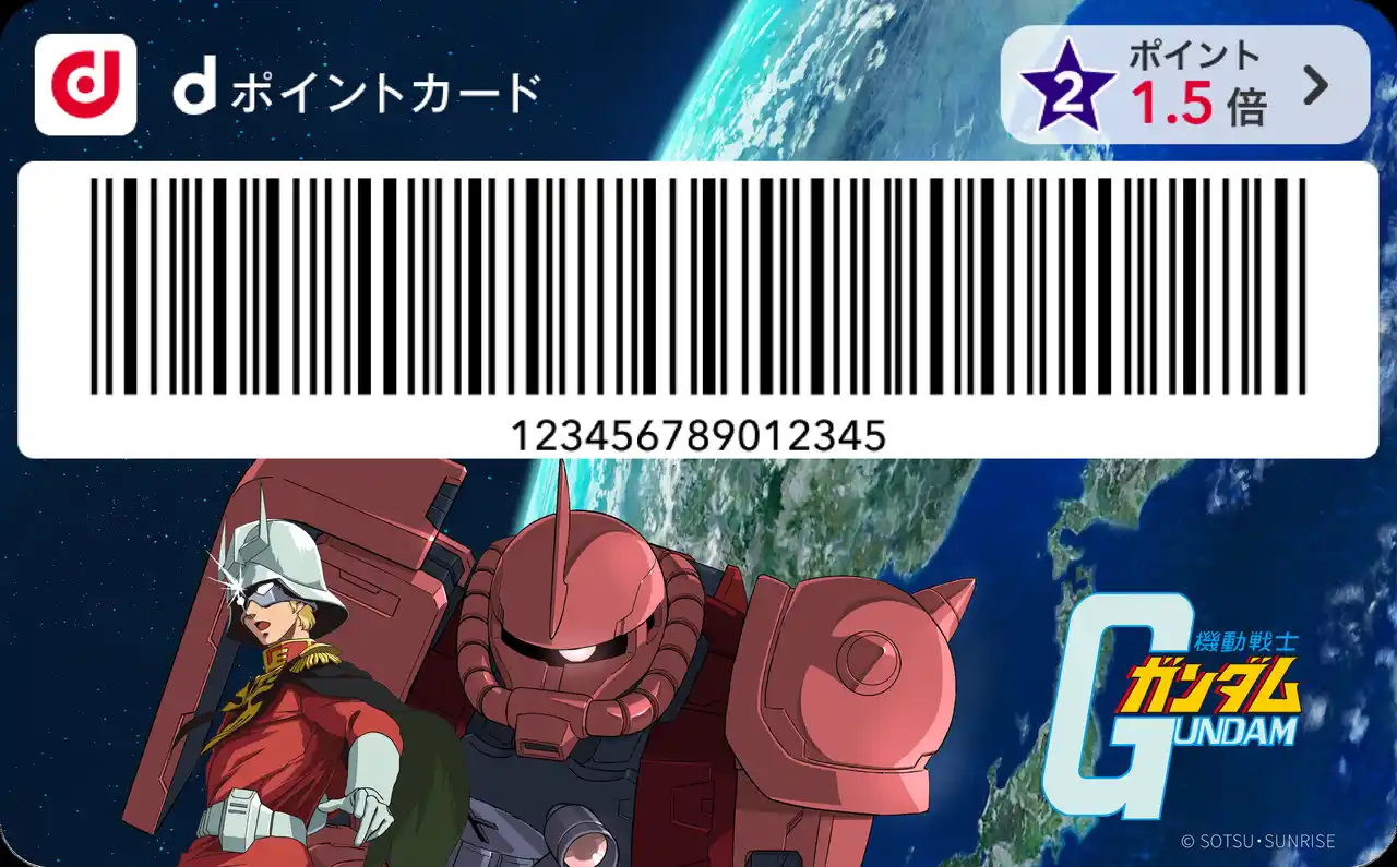 | 株式会社 NTT ドコモ(以下、ドコモ)は、2025年12月23日(火)から2026年6月30日(火)まで「ガンダムシリーズ×d払い スペシャルコラボデザインきせかえキャンペーン」(以下、本キャンペーン)を開催※1いたします。d払いアプリ※2の「バーコード券面」※3に『機動戦士ガンダム』および『機動戦士Gundam GQuuuuuuX(ジークアクス)』とコラボした、ガンダムシリーズのデザインを提供します。キャンペーン期間中限定でバーコード券面のきせかえをお楽しみいただけます。 | ||||||||||||||