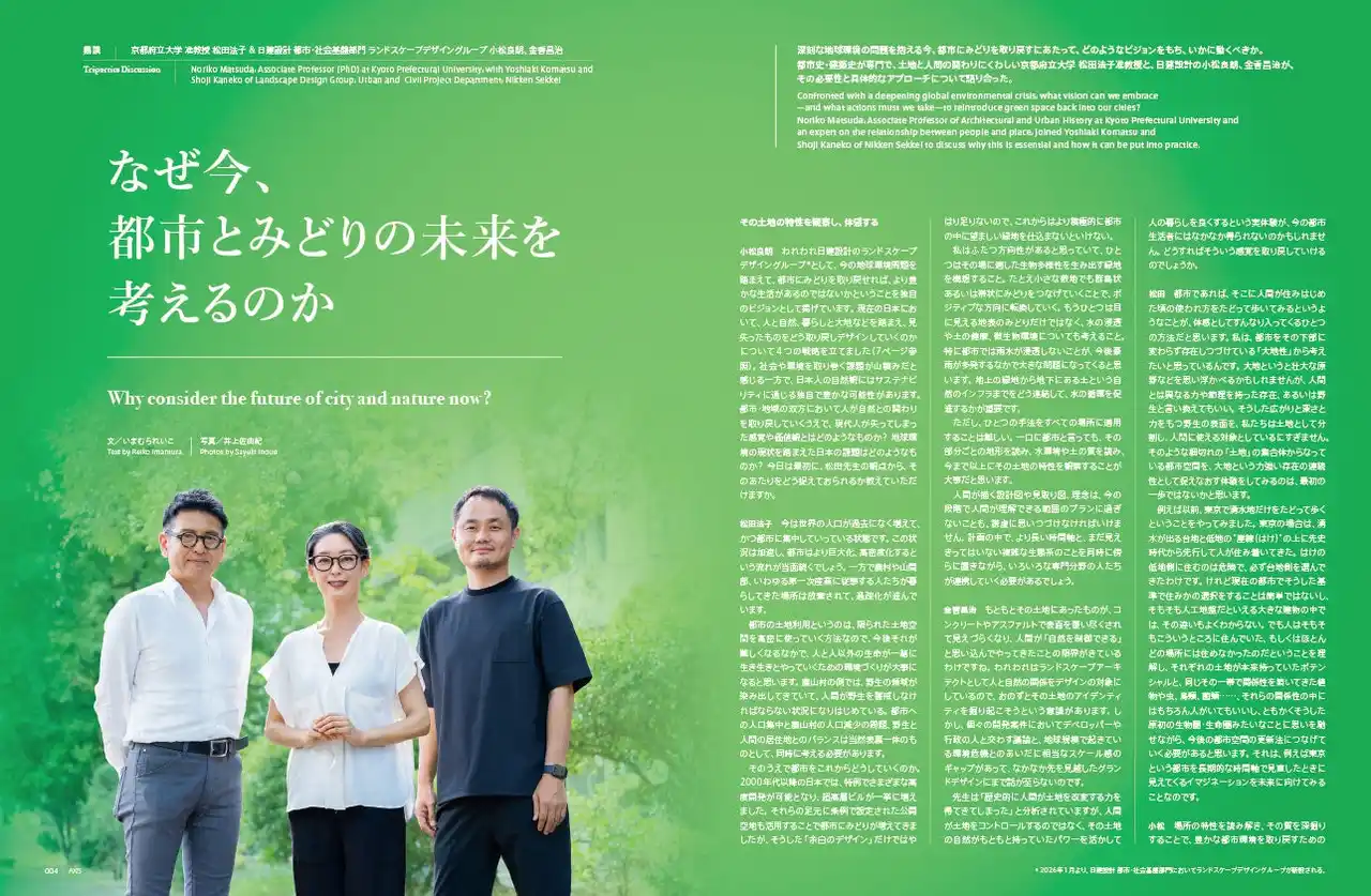 株式会社アクシス(東京都港区 代表取締役社長:朝香信雄)は、デザイン誌「AXIS」の2026年1月号の増刊として、「Nikken Green Journey 日建設計 都市と自然の未来を描く」を、2025年12月15日に発売いたしました。