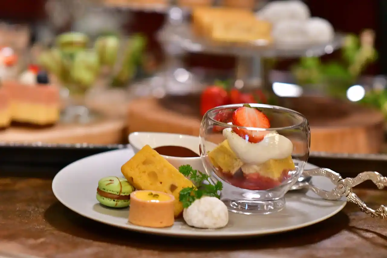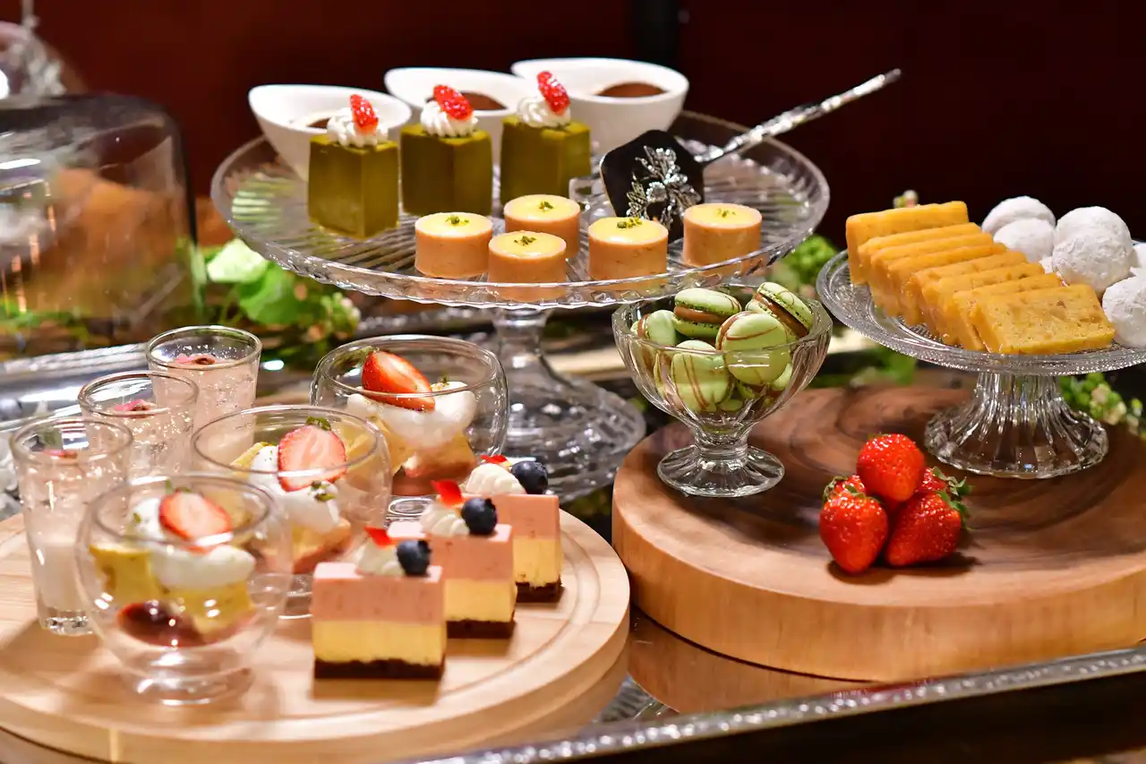 食後は、デザートワゴンサービスでお好みの甘味を味わえます。 軽やかなコースの余韻を、ゆったりと楽しめるランチタイムを満喫できます。 |