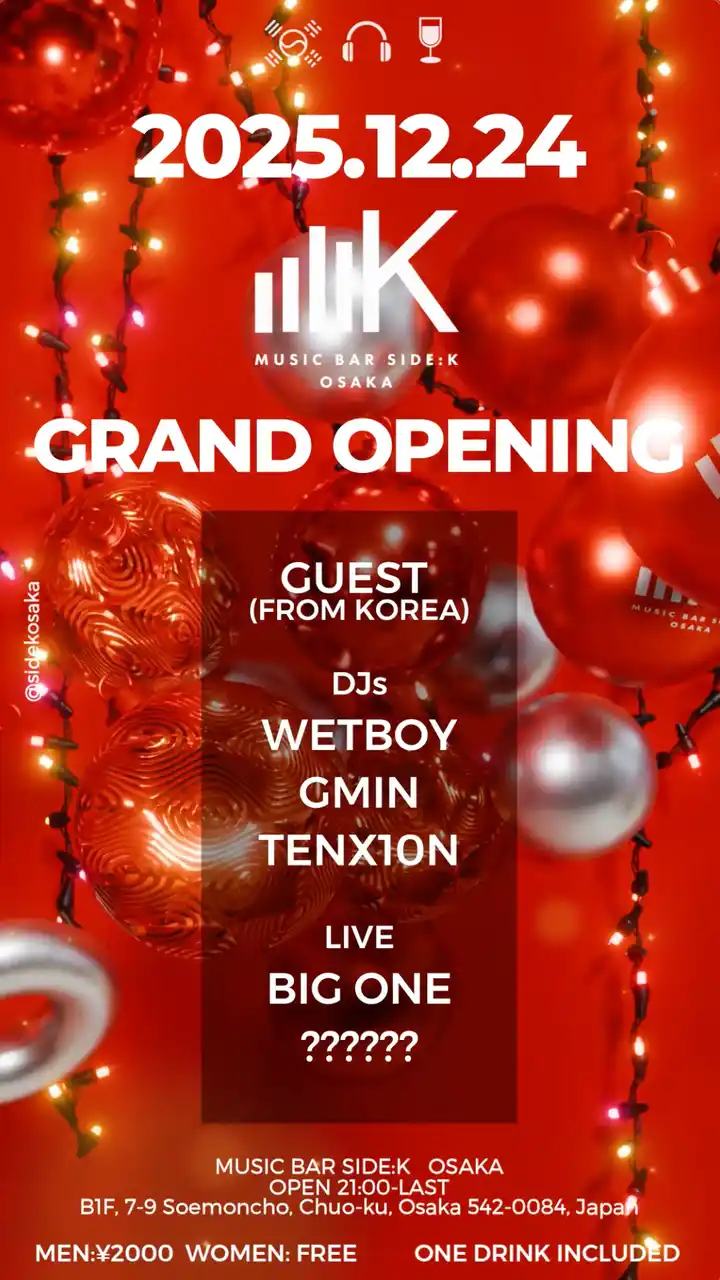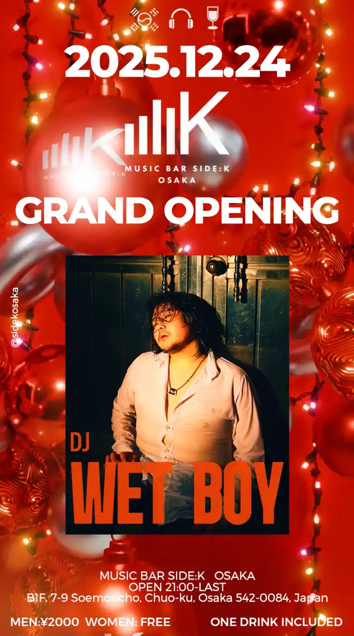 | 株式会社SWITCHH(本社:福岡市、代表取締役:原口祥太朗)は、2025年12月24(水)、大阪ミナミ(心斎橋・道頓堀)エリアに「MUSIC BAR SIDE:K(サイドケー)」をグランドオープンいたします。 | |||||||||