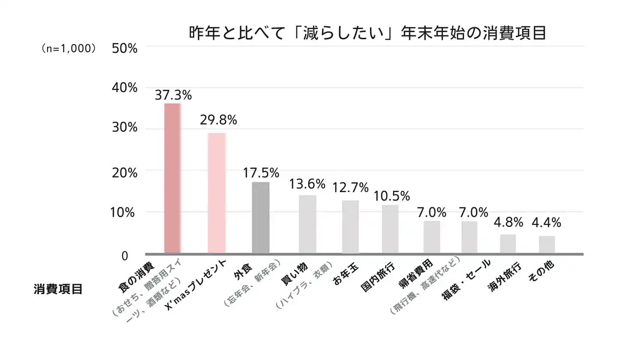 年末年始の出費を極力「減らしたい」と考える世帯においても「食の消費」がトップ。 |