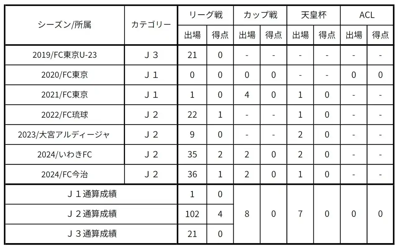 | └2024 いわきFC※育成型期限付き移籍 | |||