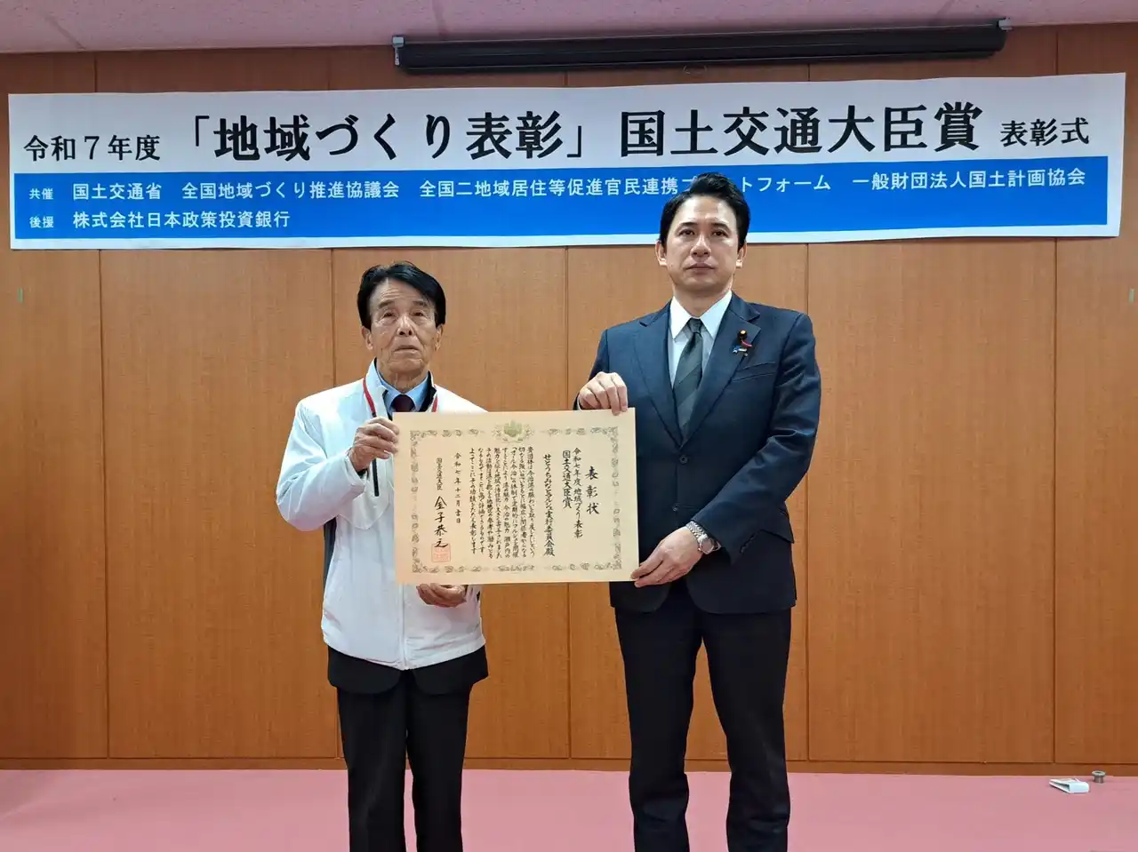 | 2025年12月22日に東京・霞が関で行われた表彰式では、国土交通大臣政務官から表彰状が授与され、北海道網走市の「MOTレール倶楽部」、長野県塩尻市の「塩尻Lab」と並び、今治発の先進的な地域づくりのモデルとして紹介されました。 | ||||||||