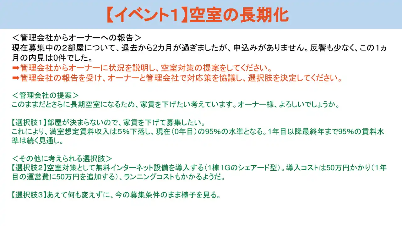 実際に投影されたスライド- 演習編(空室の長期化) |