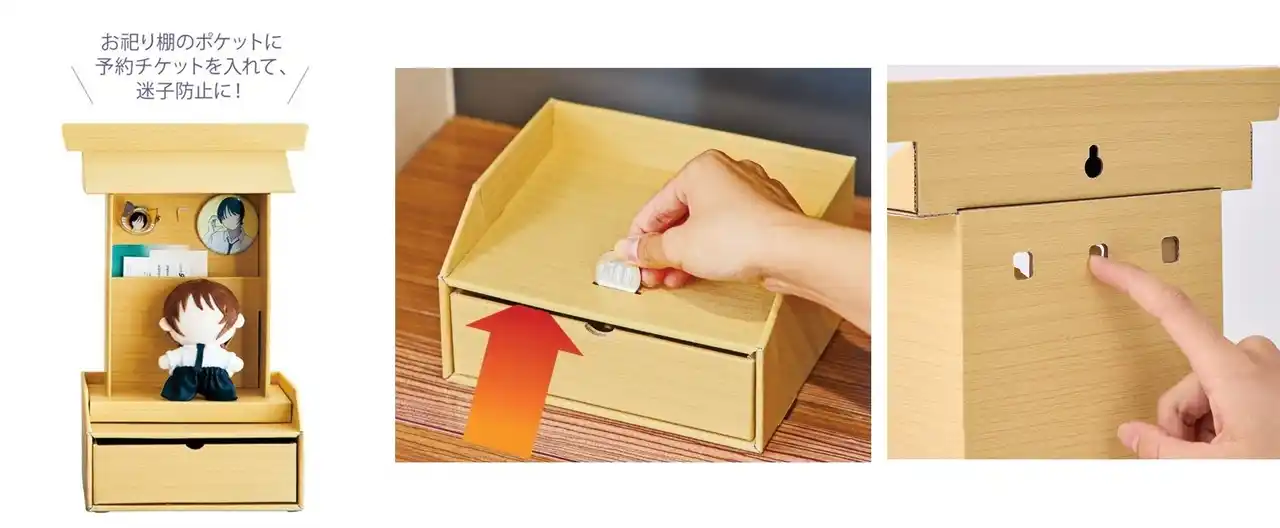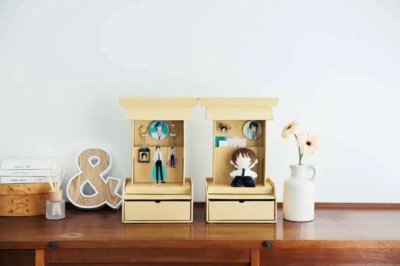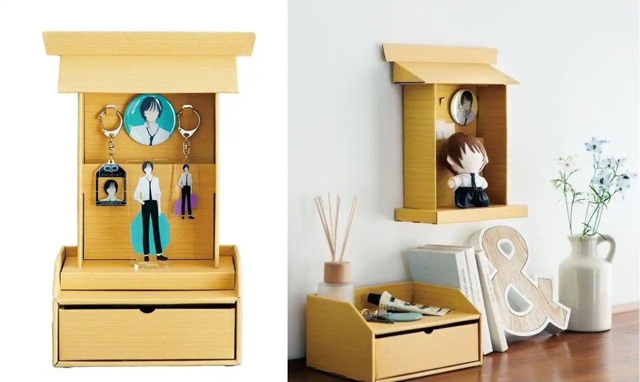 ぬいぐるみやアクリルスタンド、チケット、お守りなどコレクションしている推しグッズをまとめて「祭壇」として飾りながら「お賽銭」貯金ができる引き出し収納付き推しお祀り棚 |