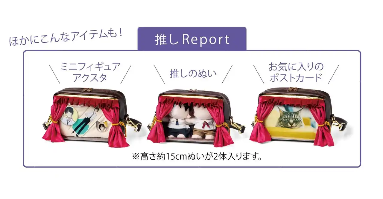 ポーチのカーテンを開ける瞬間、舞台の幕が上がるわくわく心躍る瞬間を手元で再現できるオリジナルポーチ。「ぬいを持ち歩きたいけど、丸見えはちょっと抵抗がある…」という大人世代にも最適です。外ではカーテンを閉めて目隠しし、会場の近くや写真を撮る時だけオープンにしてステージを演出できるのも大人世代に嬉しいポイント。ぬいだけでなく、ステージフォトを入れると舞台上の場面を再現できそう。ポストカードやアクスタ、お手持ちのフィギュアやお人形を入れても楽しめます。