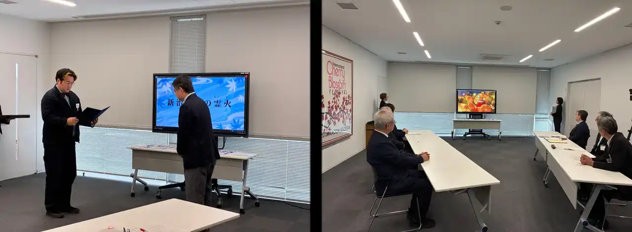 ●司会挨拶 ●海ノ民話のまちプロジェクト説明 ●認定証・完成アニメパッケージ贈呈 ●フォトセッション ●海ノ民話アニメーション上映 ●会談 ・感想などフリートーク ・上映会と地域連携企画の予定 ・アニメの活用、展開についてフリートーク ●取材(首長) ・海ノ民話アニメーションの感想 ・地域における活用構想など ●取材(沼田監督) ・今回の作品に対する想い ・地域の皆様へのメッセージ ●個別取材 |