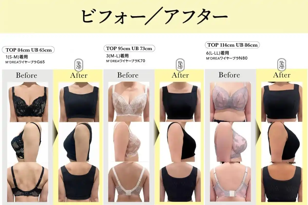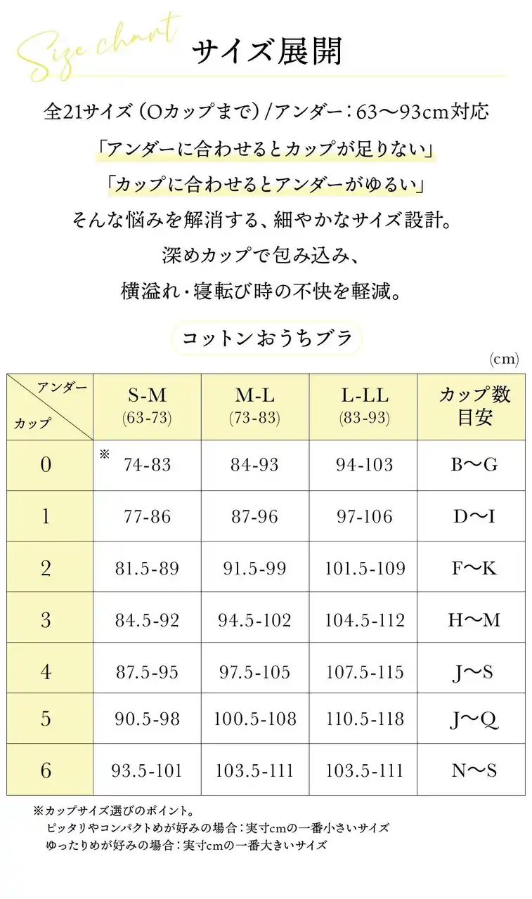 | サイズはB~Oカップ相当までを目安に、体型やサイズの変化を前提とした設計で、「今の自分に合う」を選びやすい下着を提案しています。 | |||||||||||||