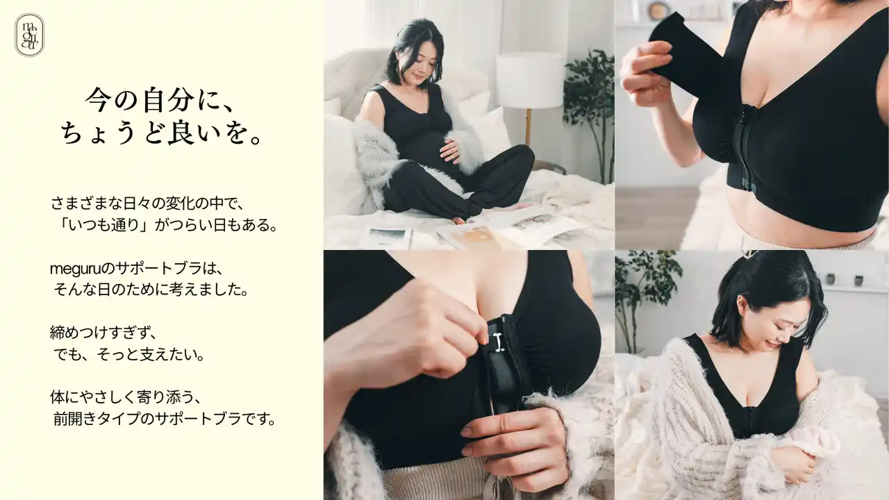 | グラマーサイズ対応下着ブランド M’DREA(マドレア)を展開する株式会社SOIREVE(代表:風神まどか)は、リカバリー発想の新ブランド「meguru(めぐる)」より、B~Oカップ相当まで対応する21サイズ展開のコットンノンワイヤーブラと、産前産後・授乳期にも対応する前開き仕様のオールサポートブラの2種を発表しました。 | |||||||||||||