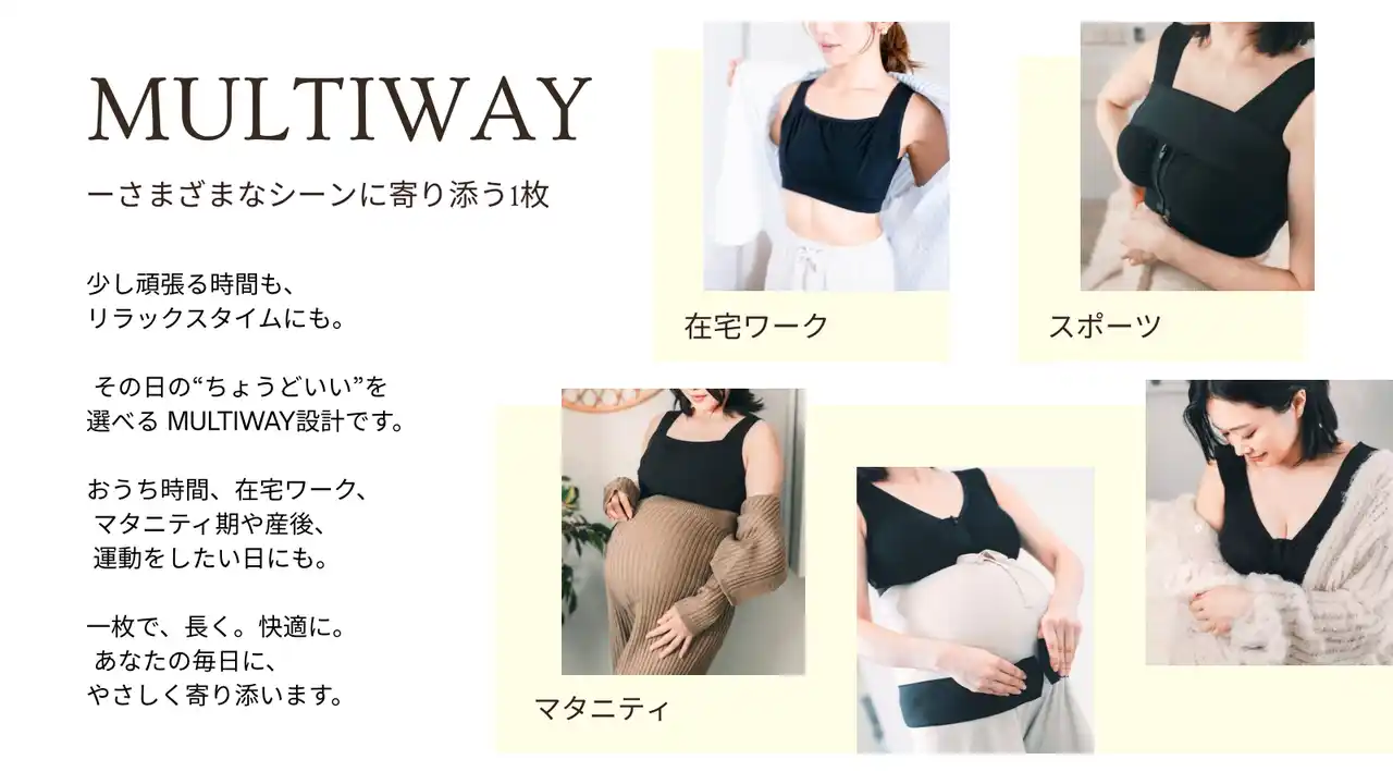 | 産前産後や授乳期など、バストサイズの変化が大きい時期にも安心して着用いただけます。 | |||||||||||||