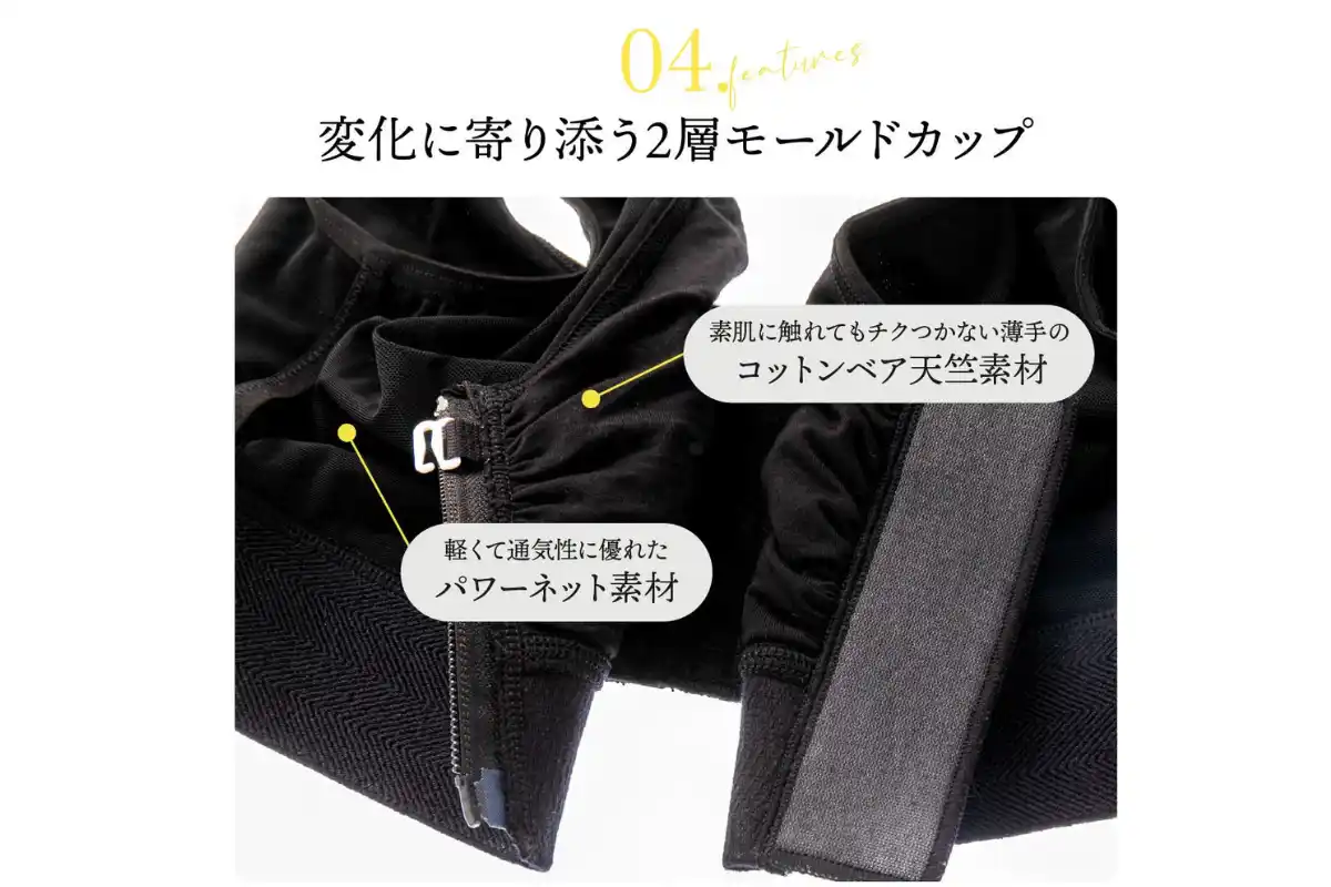 医療従事者の意見も取り入れながら、 ・肌あたり ・着脱のしやすさ ・バストの変化に合わせられる調整力 ・縫製や素材の選定 |