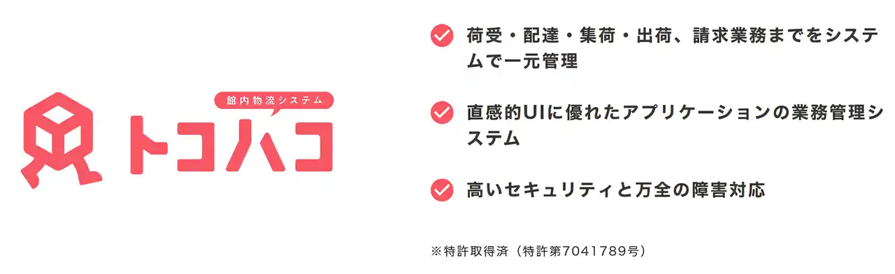館内物流システム「トコハコ」(特許取得済)は、複雑でアナログ作業の多い館内物流の業務をスマートにDX化。正確かつ効率的な館内搬送を可能にし、バックオフィス業務の負担を軽減します。さらに、データ活用による業務改善を通じて、生産性の向上と人手不足の解消にも貢献。施設全体の価値を高める革新的なソリューションです。 |