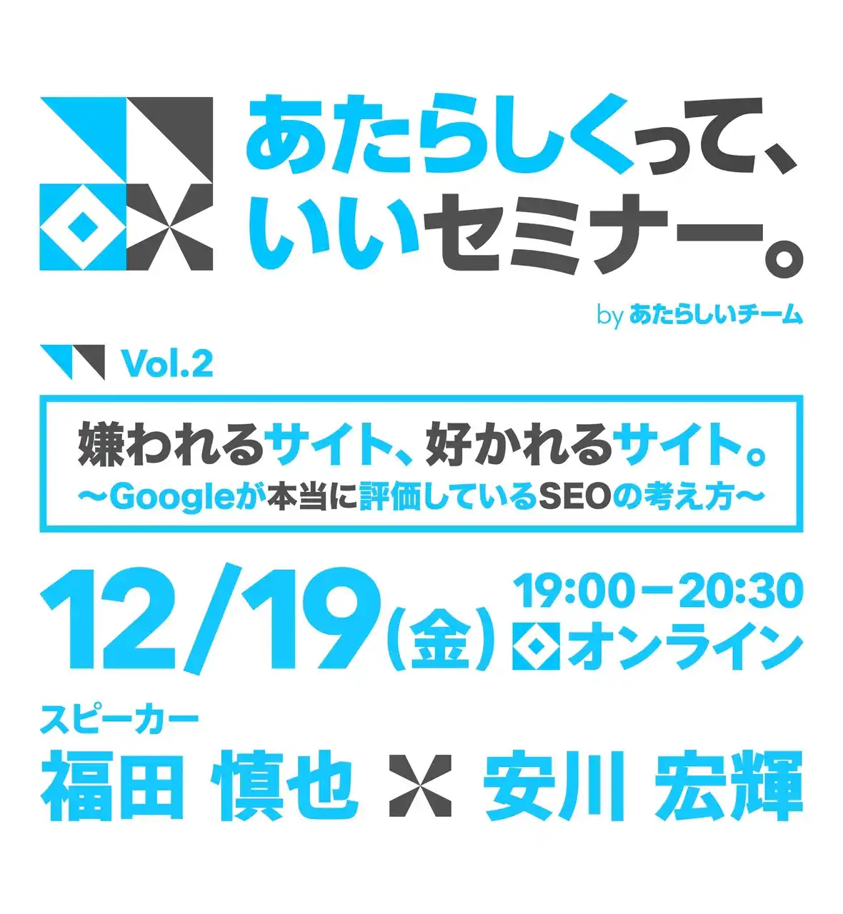 | 株式会社あたらしいチームは2025年11月19日(水)に、あたらしくって、いいセミナーvol.1。2025年12月19日(金)にvol.2を開催いたしました。 |