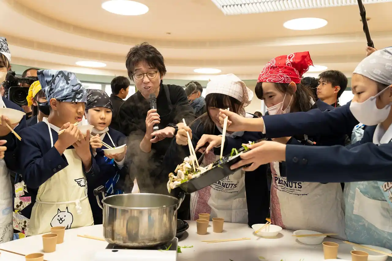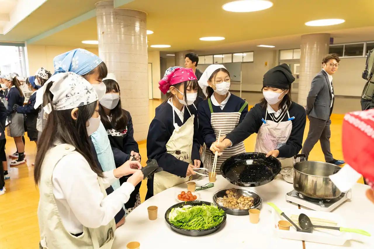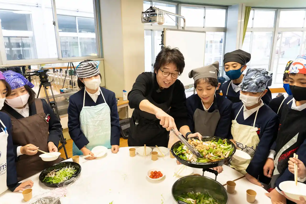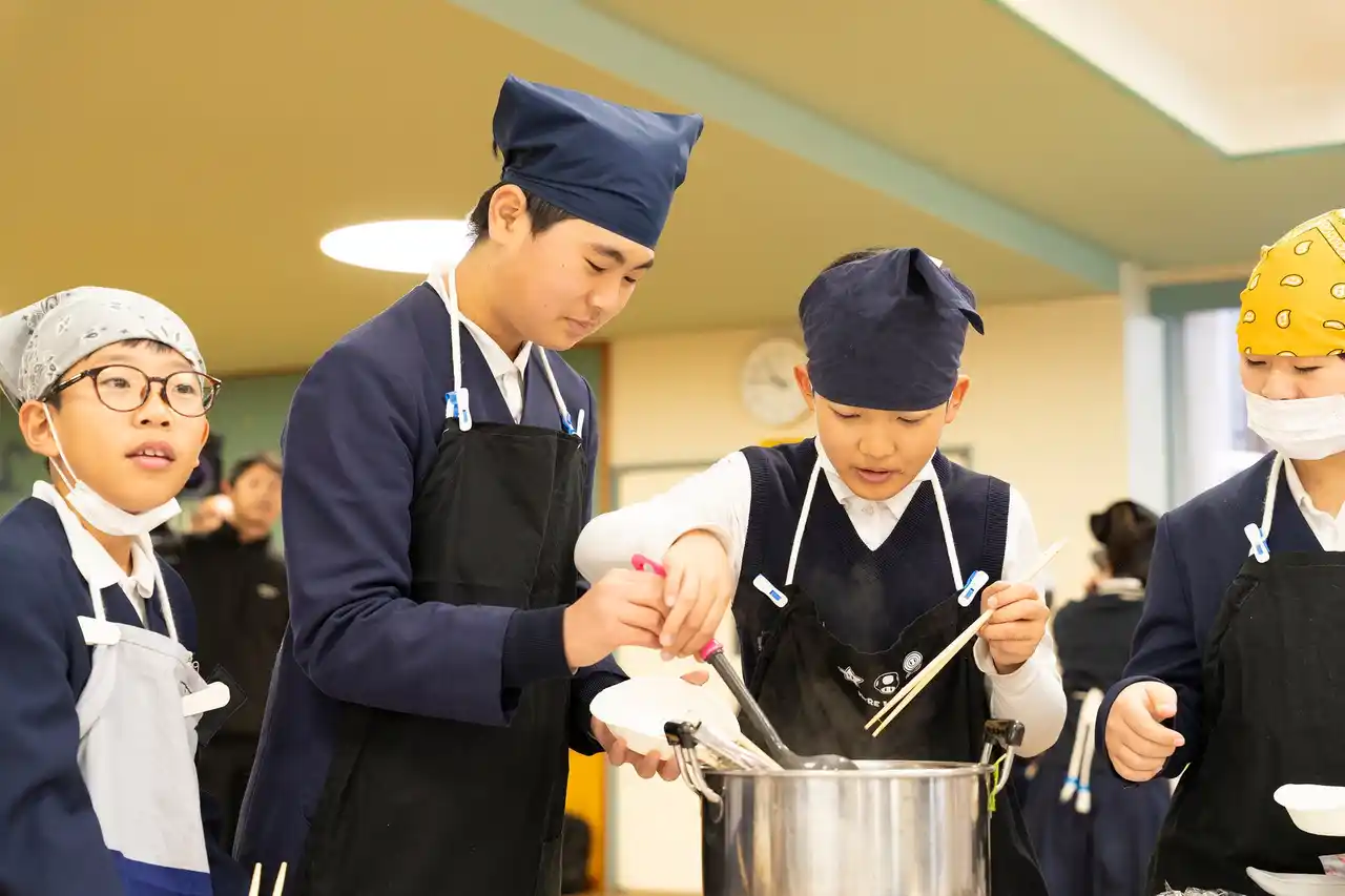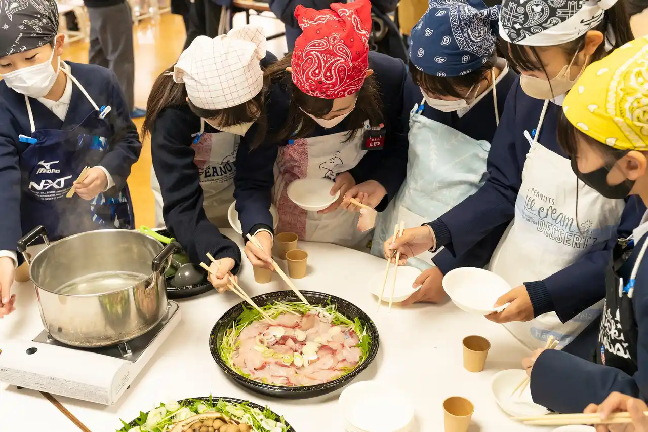 今回のぶりしゃぶ調理実習では、出汁に食材を段階的に加えてその都度味を確かめることで、うま味の変化を体験します。 |