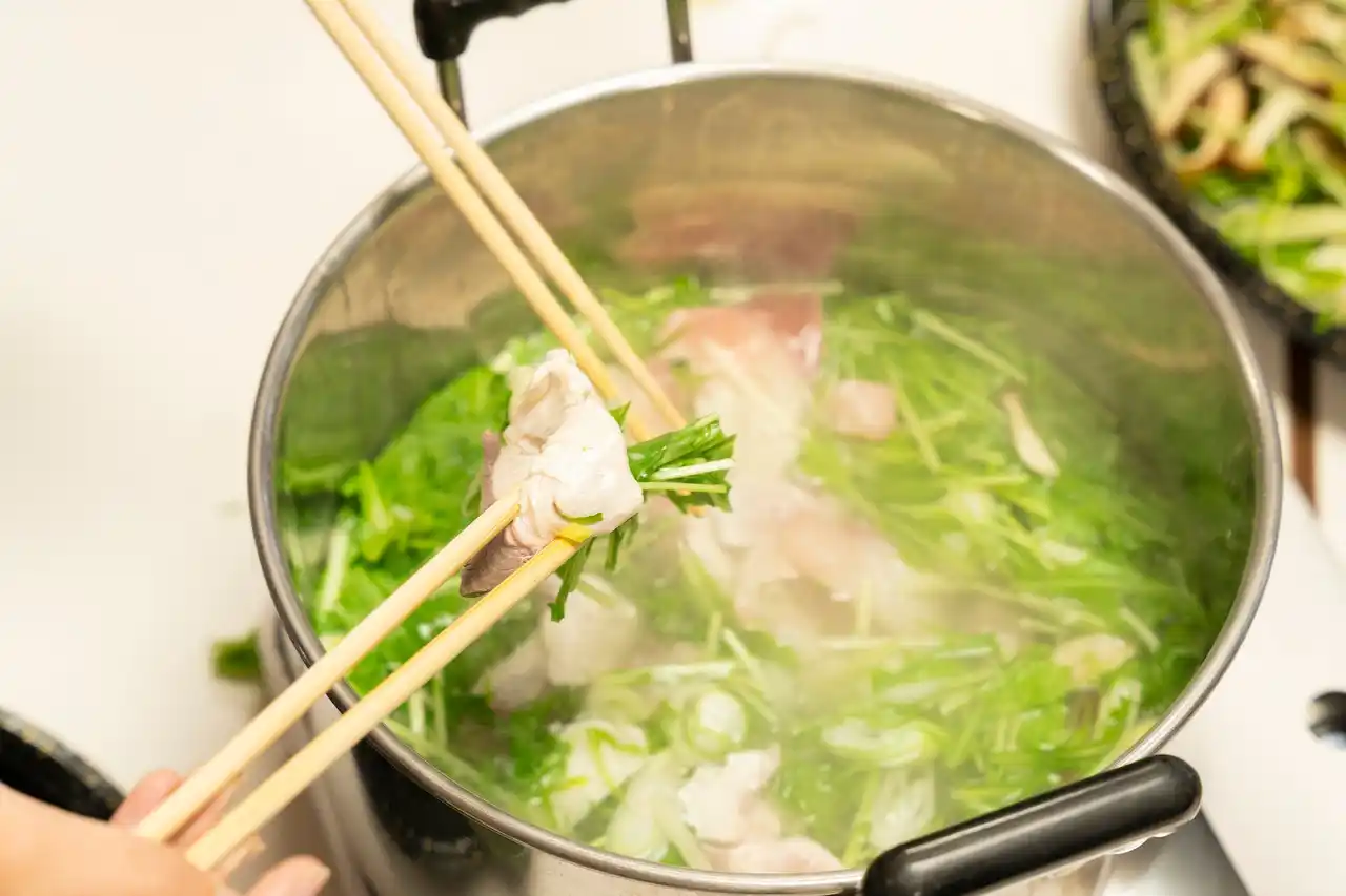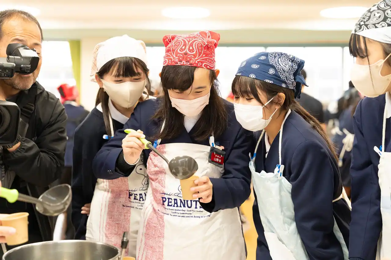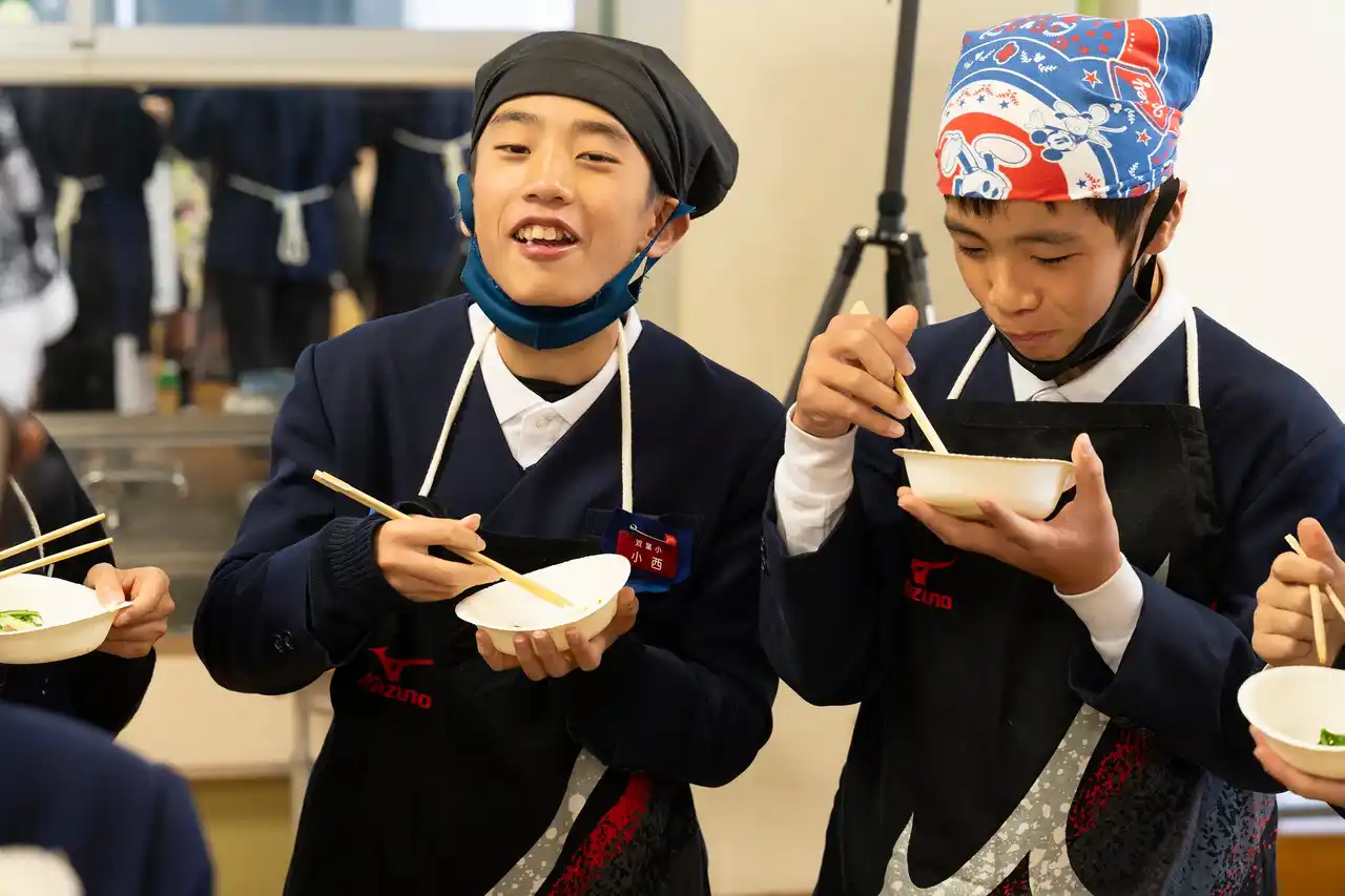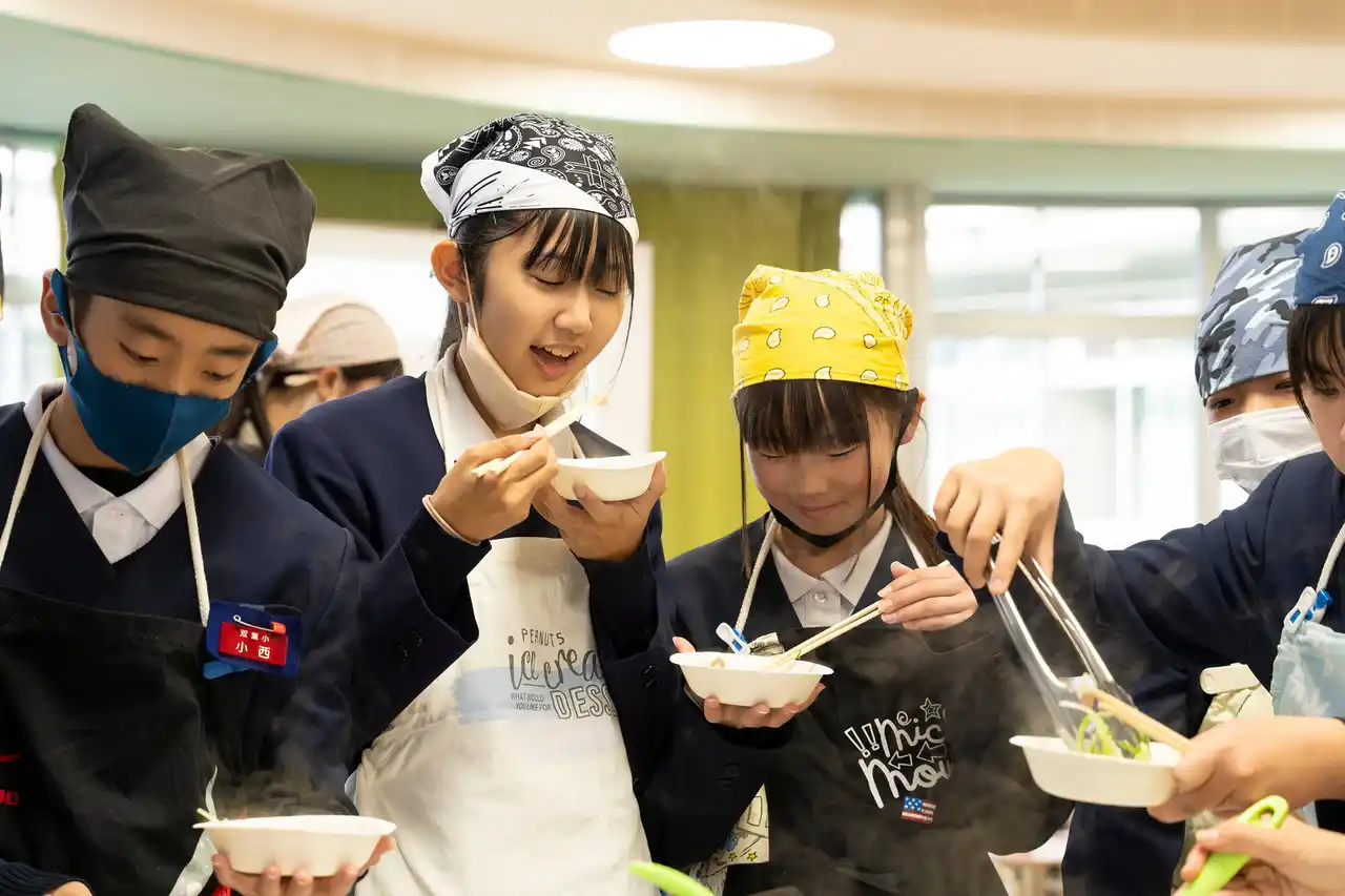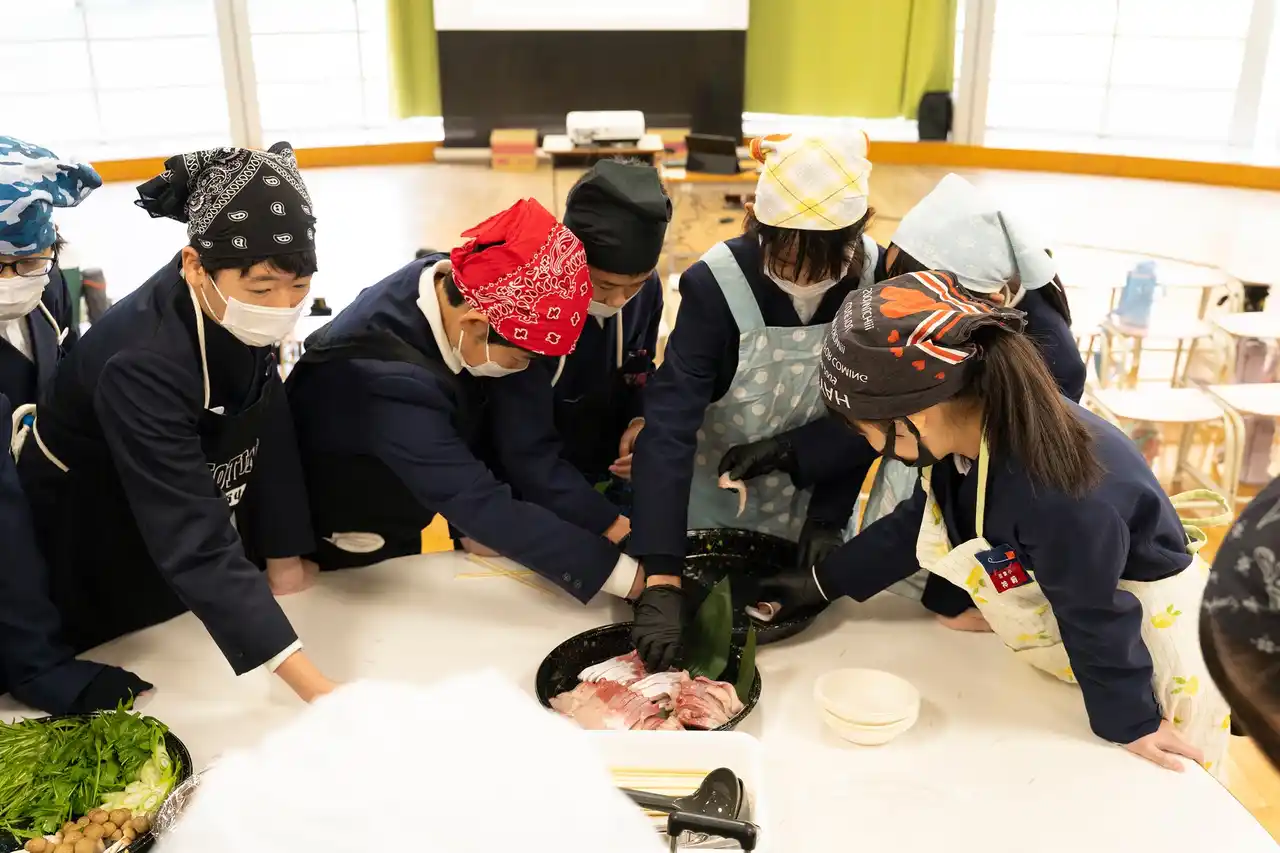 今回のぶりしゃぶ調理実習では、出汁に食材を段階的に加えてその都度味を確かめることで、うま味の変化を体験します。 |