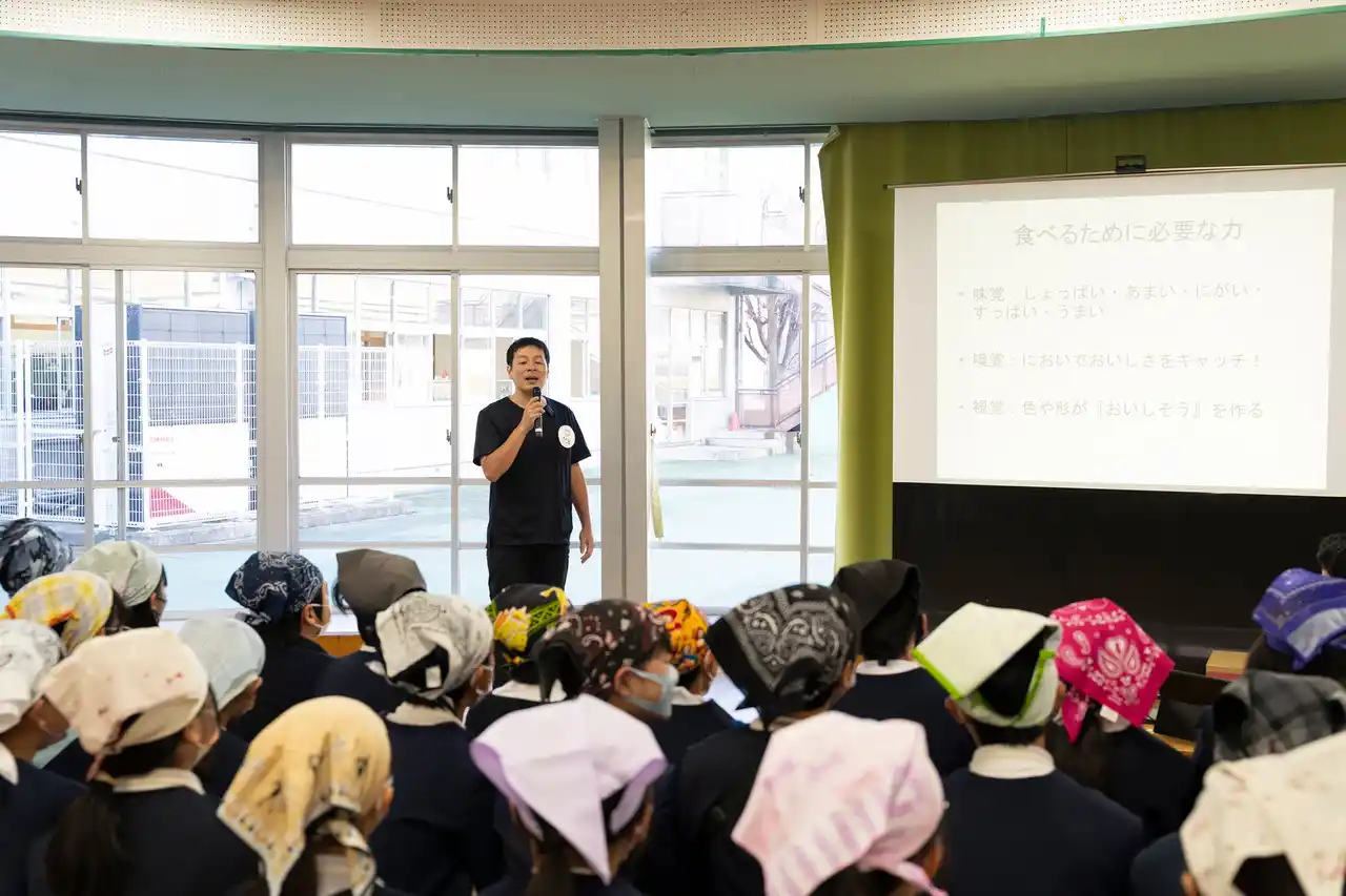 「健康」は美しさ。体の健康はもちろん、心が健康であればそれは一人ひとりの輝きとなって人生を彩ってくれます。この授業を通して未来を担う子どもたちが学校という楽しさの中で食について、またそこから想像する一人ひとりの輝く未来について考えるきっかけになることを願っています。 |