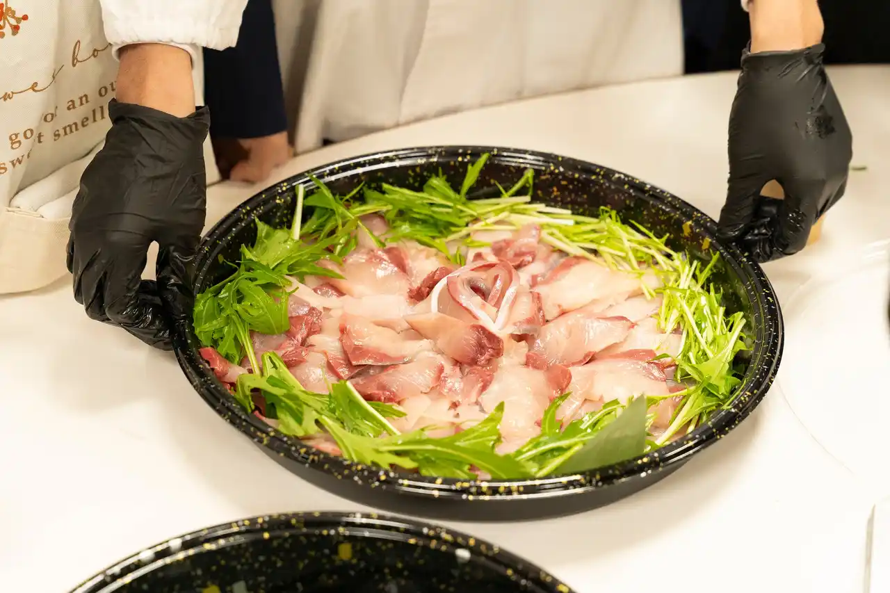 うま味を含む食材を追加するたびにぶりしゃぶを味わい、異なるうま味のかけ合わせで変化、深まる味わいを体験 |