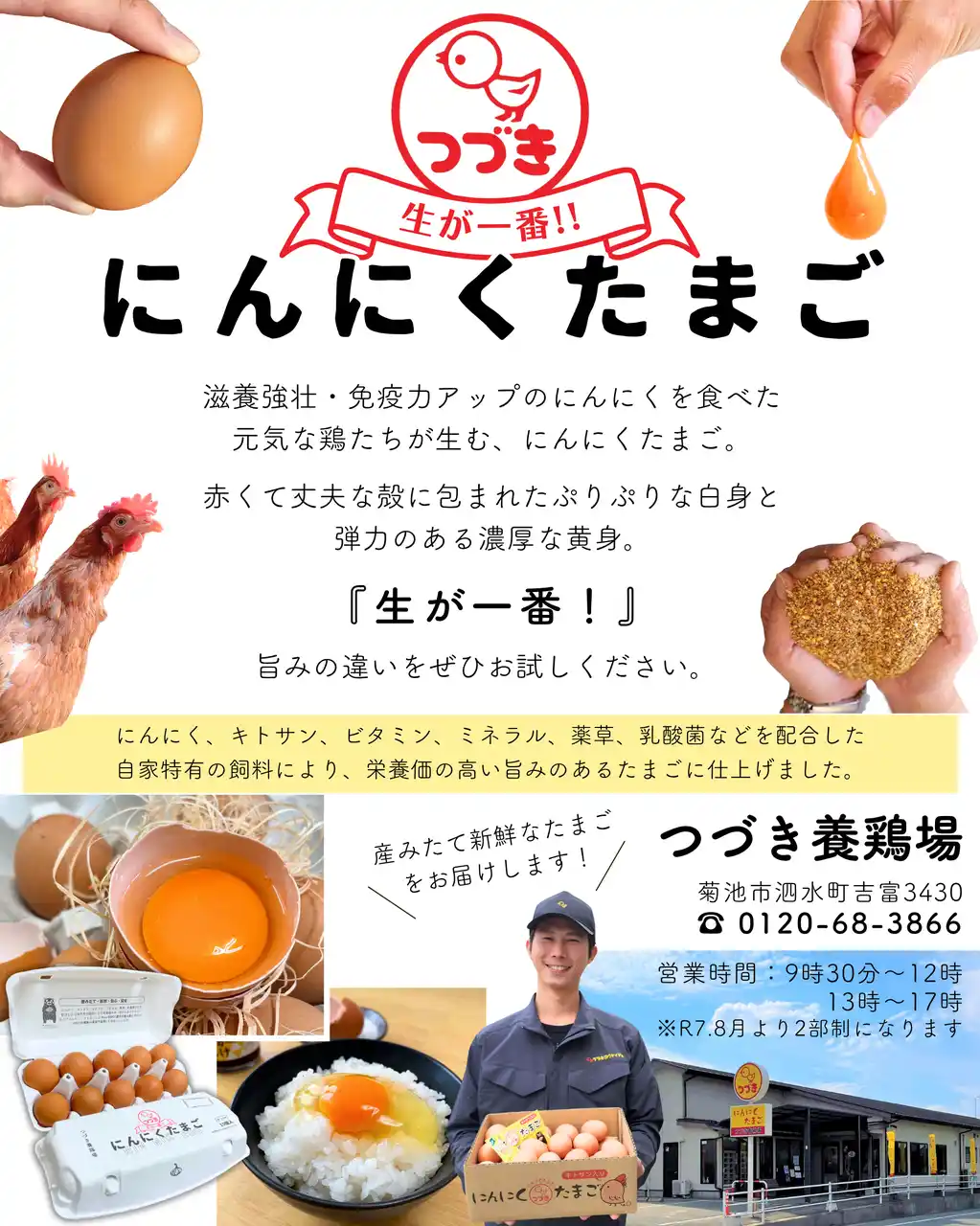 今後も、自然と調和した飼育と真心を込めた生産によって、「にんにくたまご」が地域の食卓に笑顔と活力を届けていくことが期待されます。 |