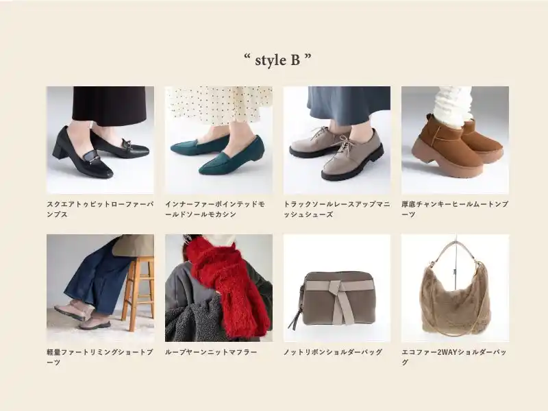 ※StyleAから2点、StyleBから2点ご購入では対象となりませんのでご了承ください。 |