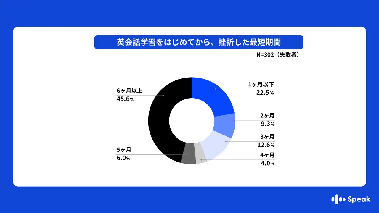 3.【3ヶ月の壁】失敗者の約半数が学習開始から「3ヶ月以内」に挫折。高い意欲で始めても、話さない学習は挫折の原因か |
