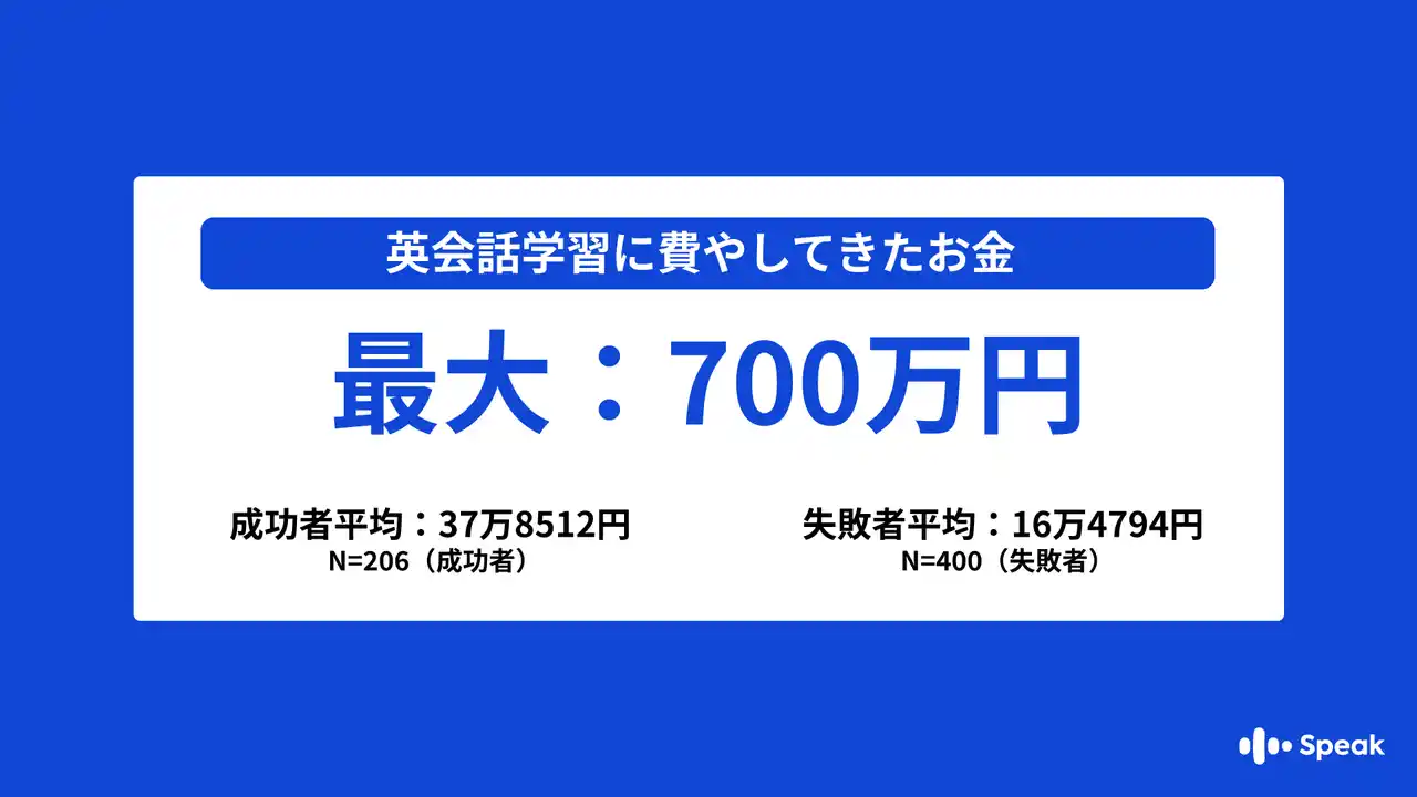 日本人の英会話学習熱は高い一方で、多くの人が「勉強しているのに話せるようにならない」という悩みを抱えています。実際にどれほどの人が挫折し、成功した人は何が違っていたのか。その差分を明確にすることで、効果的な学習への道筋を示します。 |