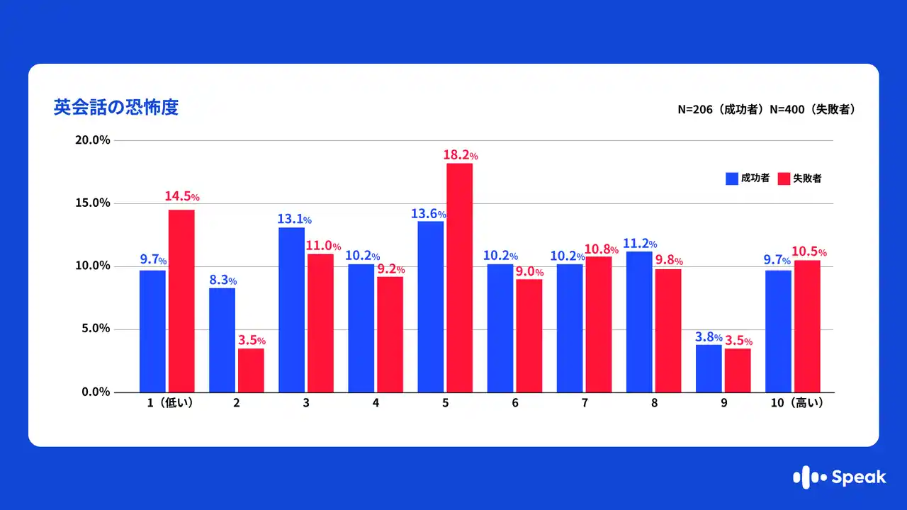 4.【心理的ハードル】成功者ですら9割が「自信なし」。英語を話す「恐怖」は上達しても消えない |
