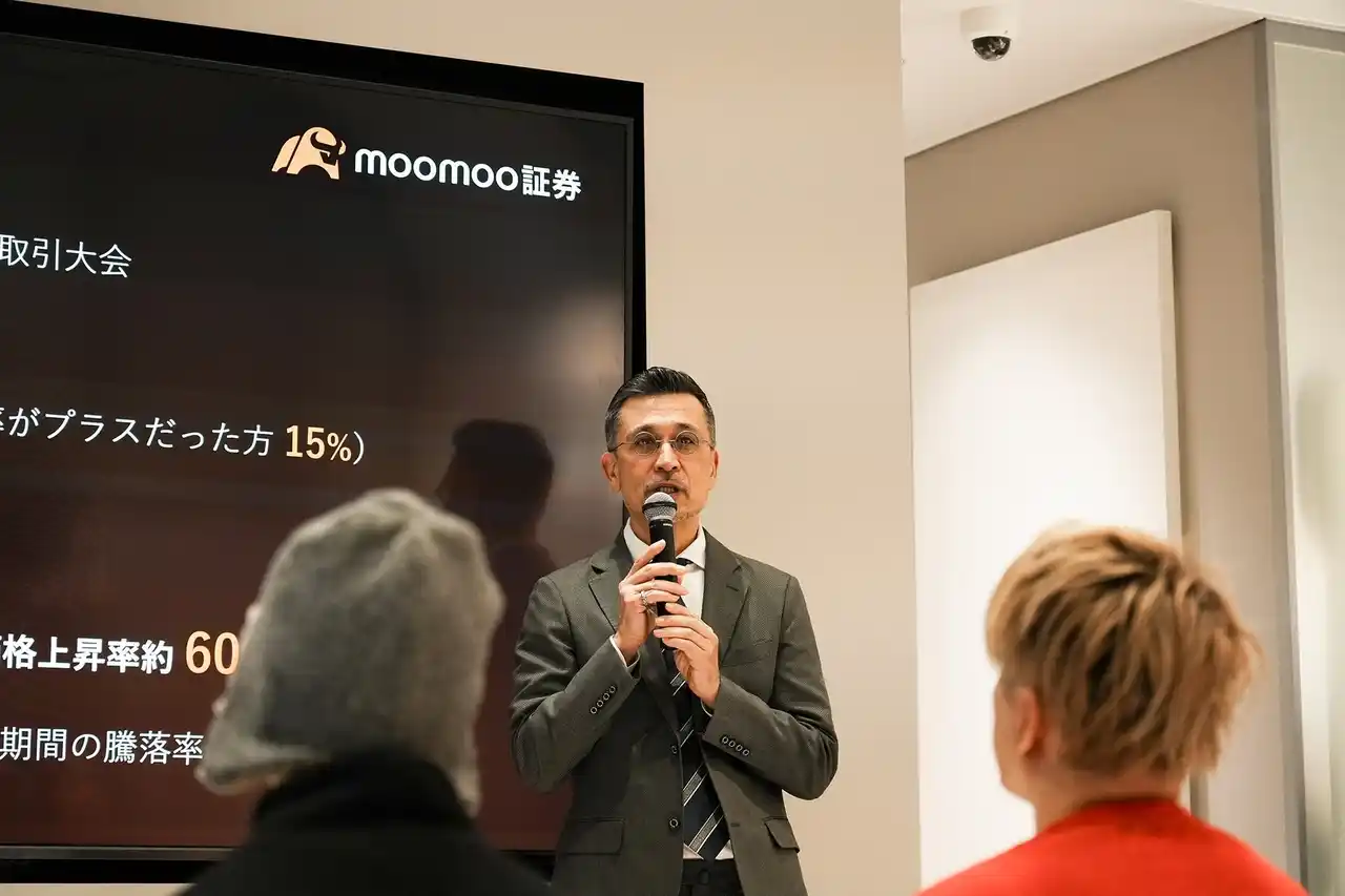 | これらの成果を讃えるため、moomoo証券はアメリカ、シンガポール、香港など世界8か国で表彰式を開催。日本では12月22日、moomoo証券ストア 表参道にて行われました。moomoo証券代表取締役社長の伊澤フランシスコが登壇。個人投資家のかつを氏をお迎えした無料の特別セミナーが行われました。 | ||||||||