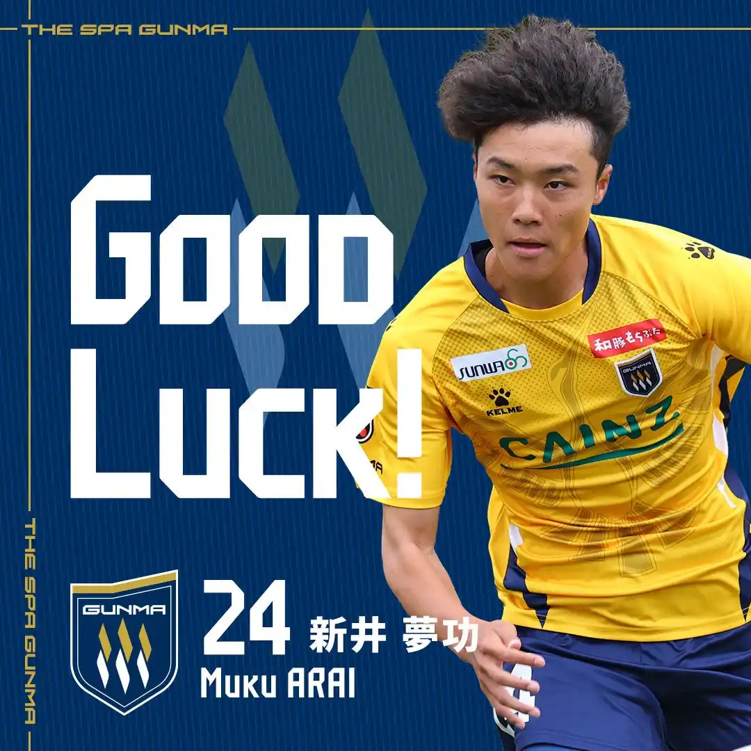 このたび、新井夢功選手がCOEDO KAWAGOE F.C(関東サッカーリーグ2部)に育成型期限付き移籍することとなりましたので、お知らせいたします。期限付き移籍期間は2027 年1月31日までとなります。 なお、新井選手は契約上、今シーズンのザスパ群馬との全ての公式戦に出場することができません。 |