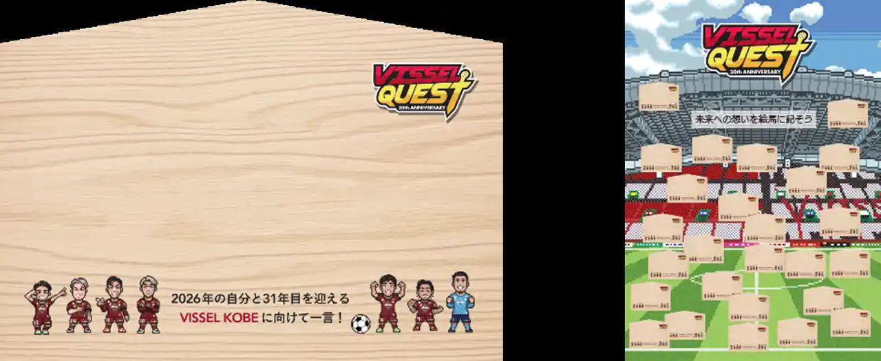 年末年始に合わせて、絵馬の願掛けをオフィシャルグッズショップ「THE VISSEL」にて実施。参加いただく方々の2026年への想いや願い、さらには新シーズンに向けたヴィッセル神戸への応援メッセージをオリジナル絵馬に書いていただき、実施いただいた方にはノベルティをプレゼントします。 |