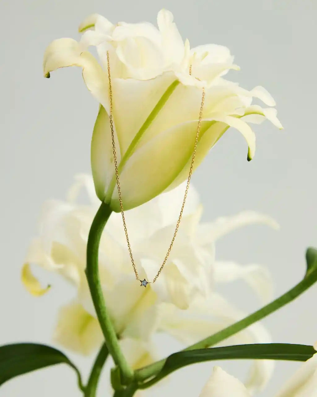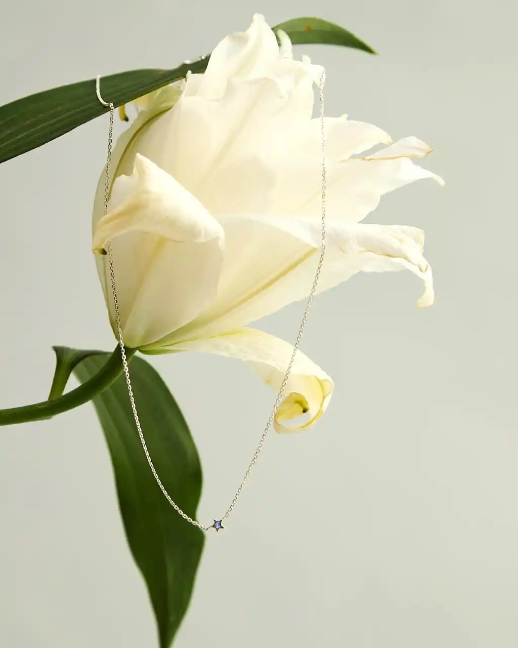 華奢なチェーンに、小さな星を象ったチャームと一粒のサファイアを合わせたこのネックレスは、繊細でありながら存在感のあるデザインが魅力です。 |