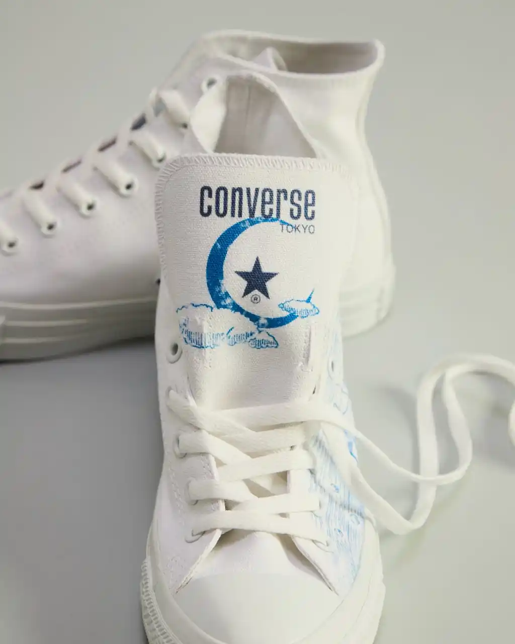 タン部分にはCONVERSE TOKYOのロゴと、星と月を組み合わせた特別なグラフィックを配置。爽やかなブルーとホワイトのコントラストで、清らかな光と新しいスタートを表現しています。 |