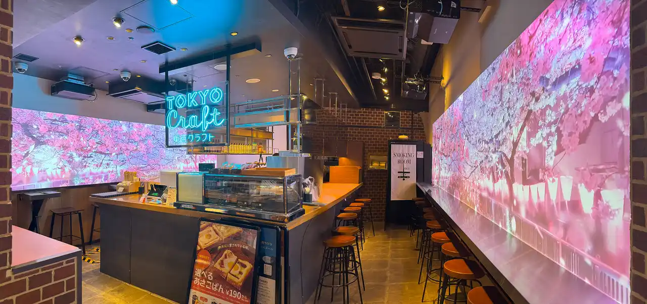 3社はこれまで約1年間、2025年3月に東京駅一番街にオープンした「TOKYO Craft BEER STAND」の空間プロデュースを通じて協業を重ねてきました。このプロジェクトでは、飲食店の業態転換に伴う基本設計・実施設計・設計監理・映像演出を一貫して実施。各社が持つ強みを最大限に発揮しながら、空間・デザイン・テクノロジーを融合した店舗体験を実現しました。 |