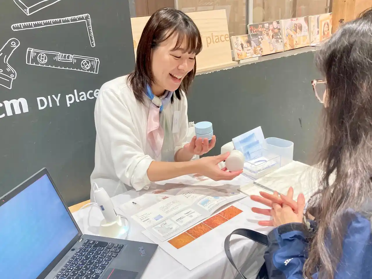 ディセンシアのクリームをタッチアップをいただくことで商品理解を深めていただきました |