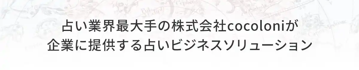 占いサービス市場を代表する1社として認知されています。スマートフォンやPC向けに配信する占いコンテンツ、電話やチャットでのオンライン占い、対面占いの店舗「cocoloni占い館」、法人向け占いサービスなど、グループ各社を通じて多様な占いサービスを提供しています。 |