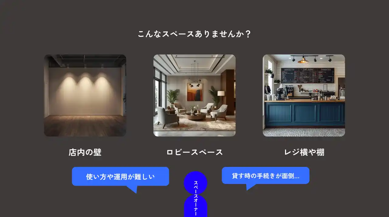 サービスの本格開始に向け、展示にご協力いただけるスペースを募集しております。 |