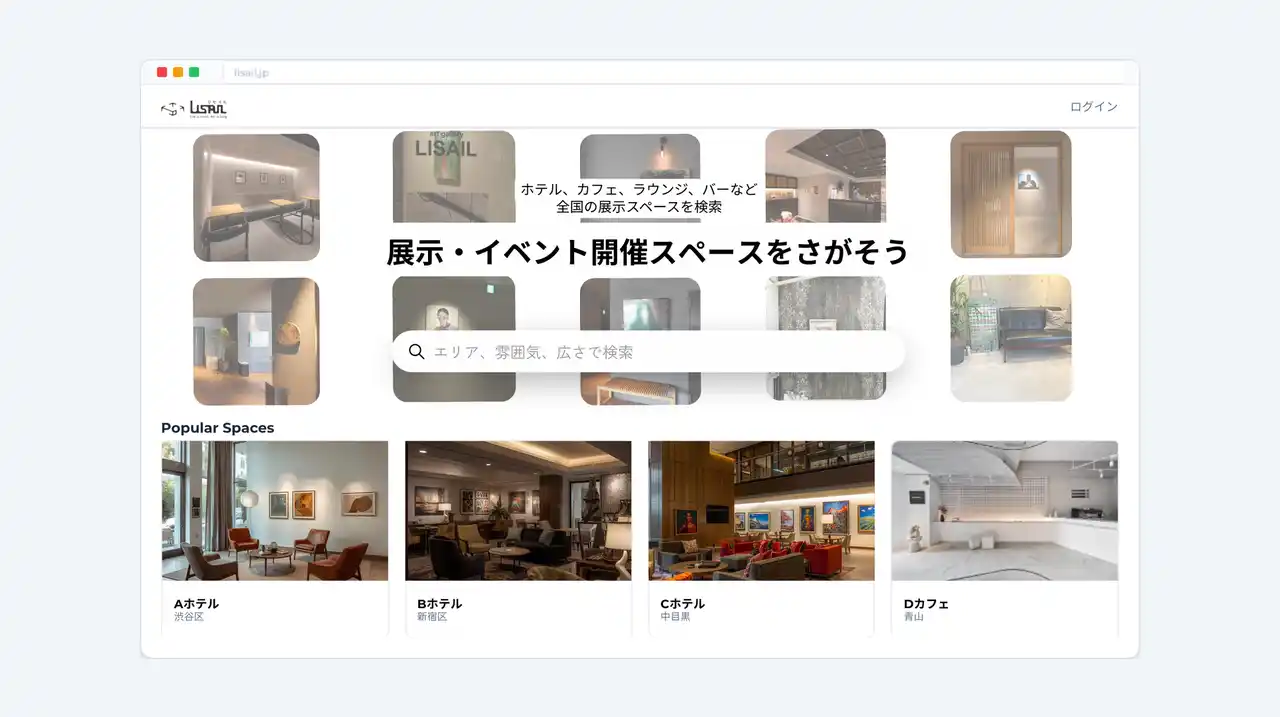 飲食店やホテルには、活用されていない壁面や棚などの「余白」が数多く存在します。一方で、作品発表の場を求めるアーティストにとって、従来の貸しギャラリーは高額な賃料が大きな負担となっていました。 「LISAIL」は、これらをつなぐことで、店舗には「収益と空間の彩り」を、アーティストには「手軽な展示機会」を提供するWebサービスです。「Life is short, Art is long」をビジョンに、日常にもっとアートを届けていきます。 |