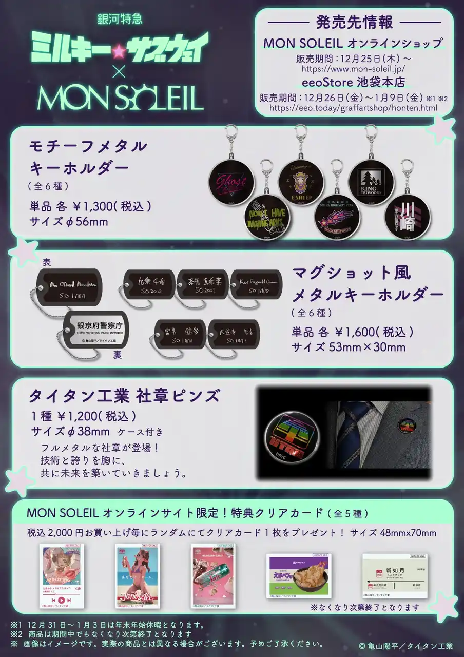 銀河特急 ミルキー☆サブウェイ × MON SOLEIL 製品リスト1. |