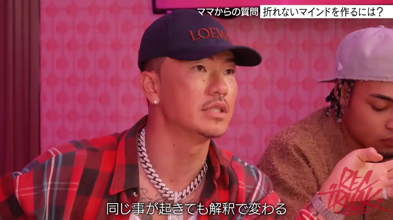 さらに、AK-69とHezronを迎えたスタジオトークでは、「マインドが落ちる事はある?」という質問にAK-69が「あるよ!」と回答。対象法を聞かれたAK-69は「同じことが起きても解釈で変わる」とし、「例えば大事なサングラス、落として壊れて、もう修復不可能だってなったら。“どうしよう”って落ち込む事もできるし、これが壊れたことによって新しいサングラスと出会えて、それがめっちゃフィットして、世界に一つしかない代物っていう可能性もある。それに出会えたっていう解釈に変わると、ポジティブに変わる」と、AK-69流の折れないメンタル術を披露しました。 |