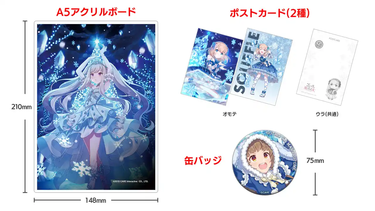 株式会社ケイブ(本社:東京都目黒区、代表取締役社長:高橋祐希、証券コード:3760)が配信中のシューティングゲームアプリ『ゴシックは魔法乙女~さっさと契約しなさい!~』(『ごまおつ』)におきまして、クリスタルクリスマスグッズ5乙女&学園乙女の販売を開始いたしました。また、同アプリ内にて開催中のクリスマスキャンペーンについてもあわせてご紹介いたします。 |