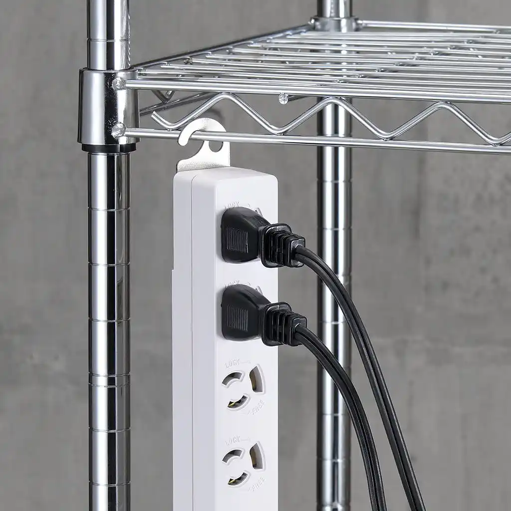 ●360度回転するフックで、スチールラックなどに引っ掛けて使用できます。 |