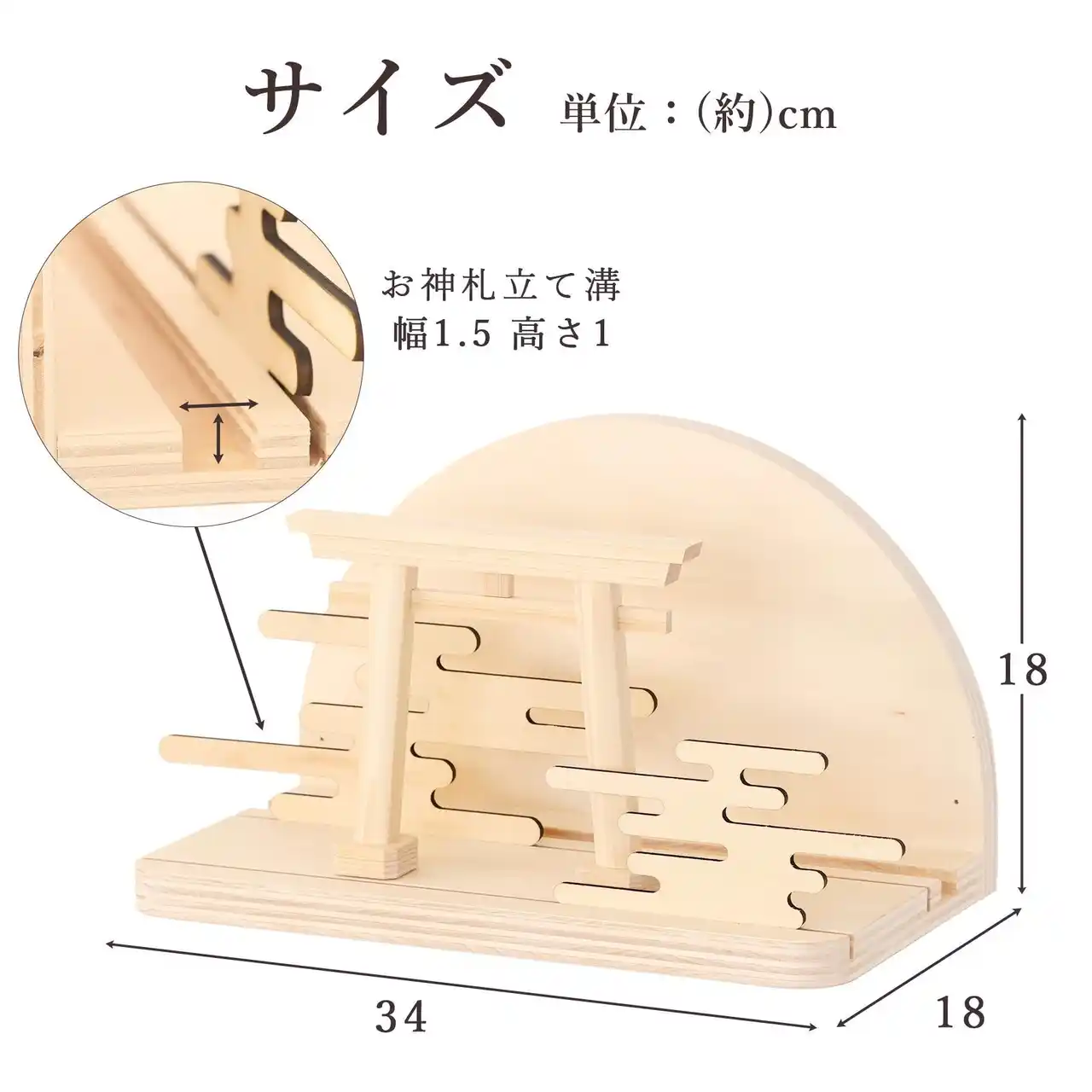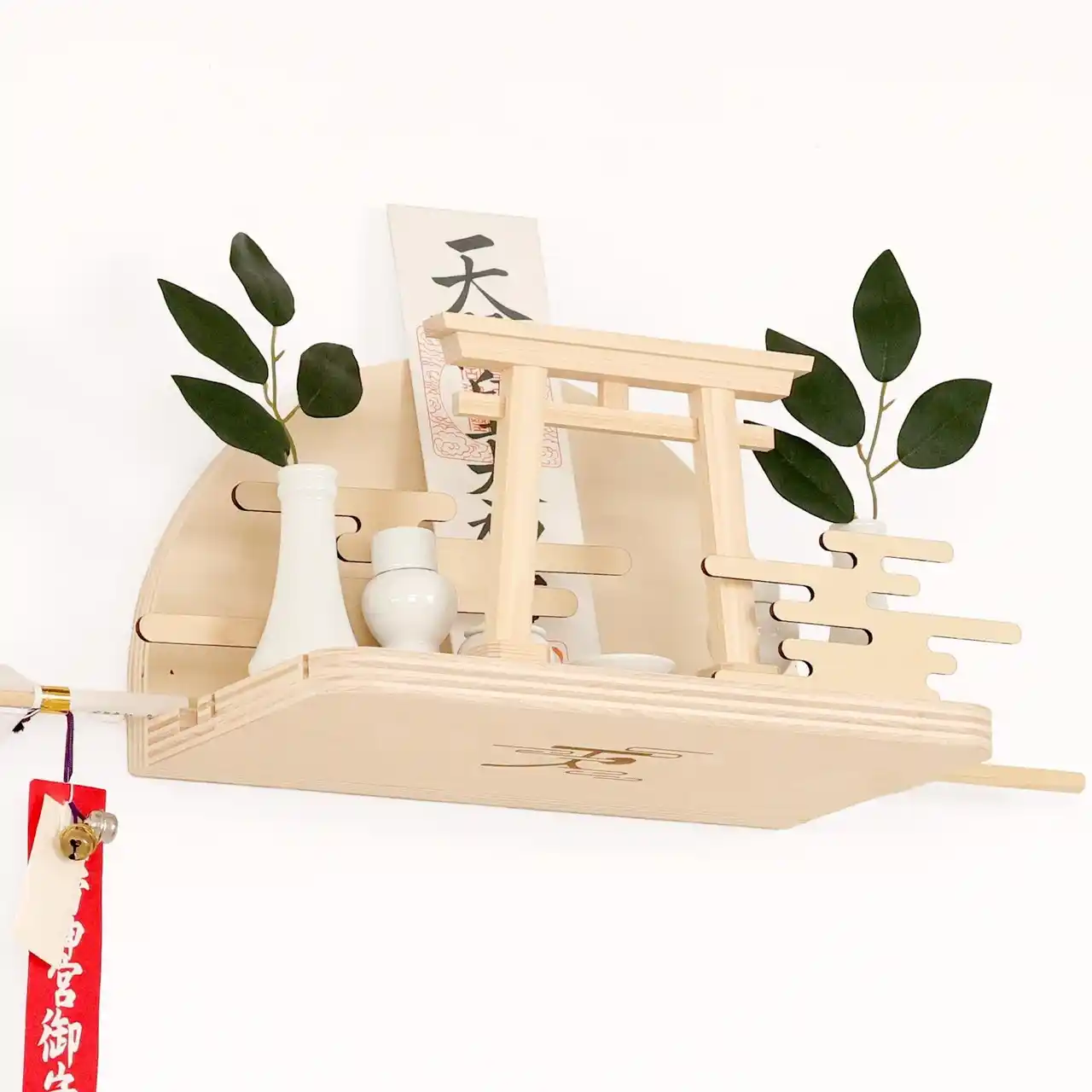 神具一式を乗せることができ、従来の神棚よりコンパクト・軽量に。しっかりとお札を飾れる、ちょうどいい大きさ。 |
