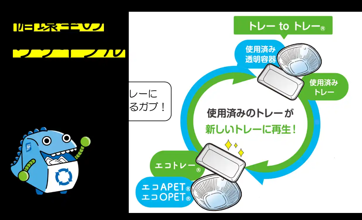 スーパーマーケットやコンビニエンスストアなどで使用される簡易食品容器を製造販売する国内最大手メーカーです。エフピコ方式のリサイクル「トレーtoトレー」「ボトルto透明容器」による地上資源の循環及びCO2 排出量削減、環境負荷の低い容器の開発による省資源化などを通じて、持続可能な社会の実現を目指しています。 |