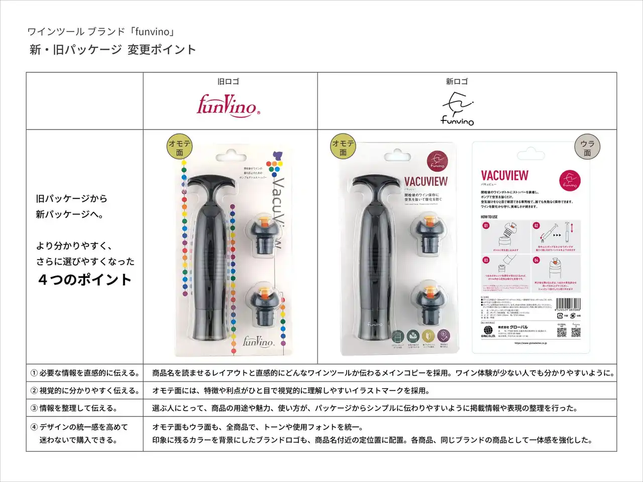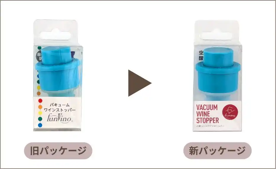 ワインツールブランド「funvino」 新・旧パッケージ 変更ポイント |