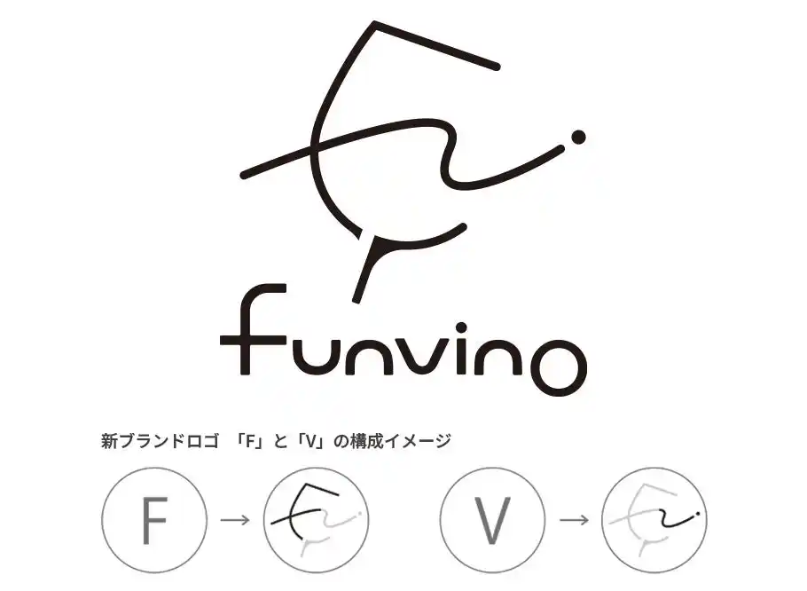 新しいブランドロゴは、ワインを楽しむ時間の心地よさや、穏やかな気持ちを表現したデザインです。 シンボルマークには、「funvino」の「F」と「V」の文字が組み込まれ、グラスを傾けた際のワインのゆらめき、ゆっくりと流れる時間や楽しさで弾む気持ちを表しています。親しみやすさと直感的な分かりやすさを大切にした、ユーザーフレンドリーなデザインです。 |