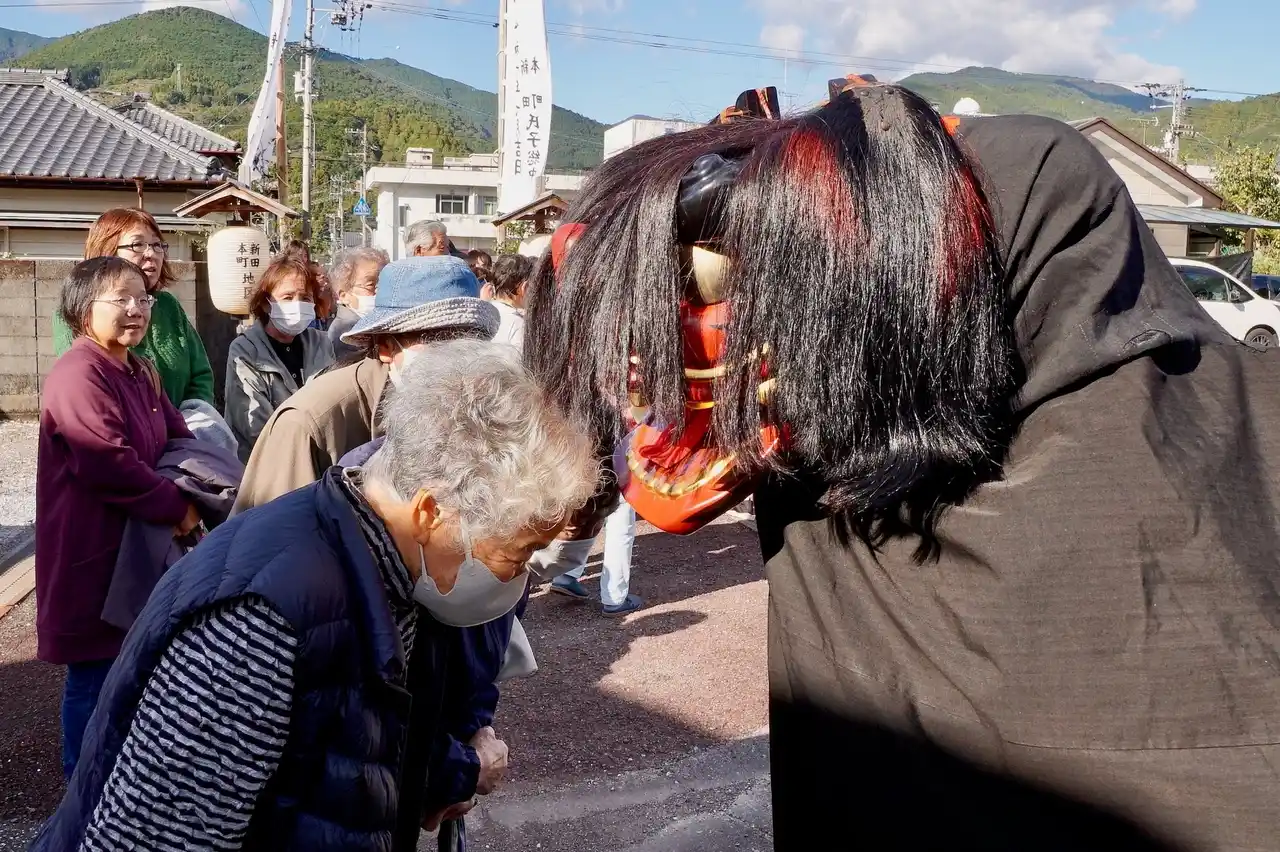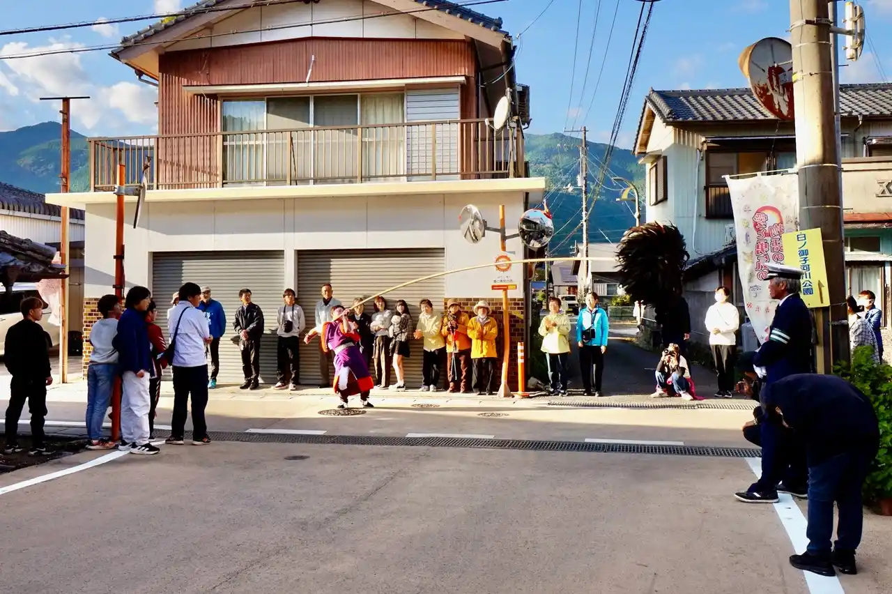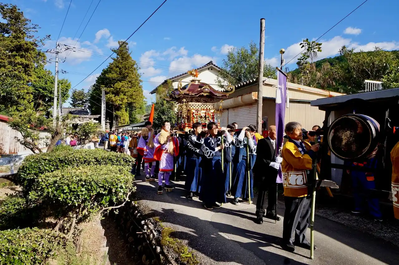 | 香美市立やなせたかし記念館のすぐ近くにあり、やなせたかし先生が手がけた十二支のキャラクターや描きおろしの巨大絵馬があることでも知られる香美市香北町の「大川上美良布神社(おおかわかみ びらふ じんじゃ)」。こちらで毎年11月3日に執り行われている秋季大祭では、高知県の無形民俗文化財にも指定されている「おなばれ」という御神幸が行われ、多くの観客を魅了しています。今回は2025年11月3日(月祝)に開催されたその模様をご紹介します。 | ||||||||||||||